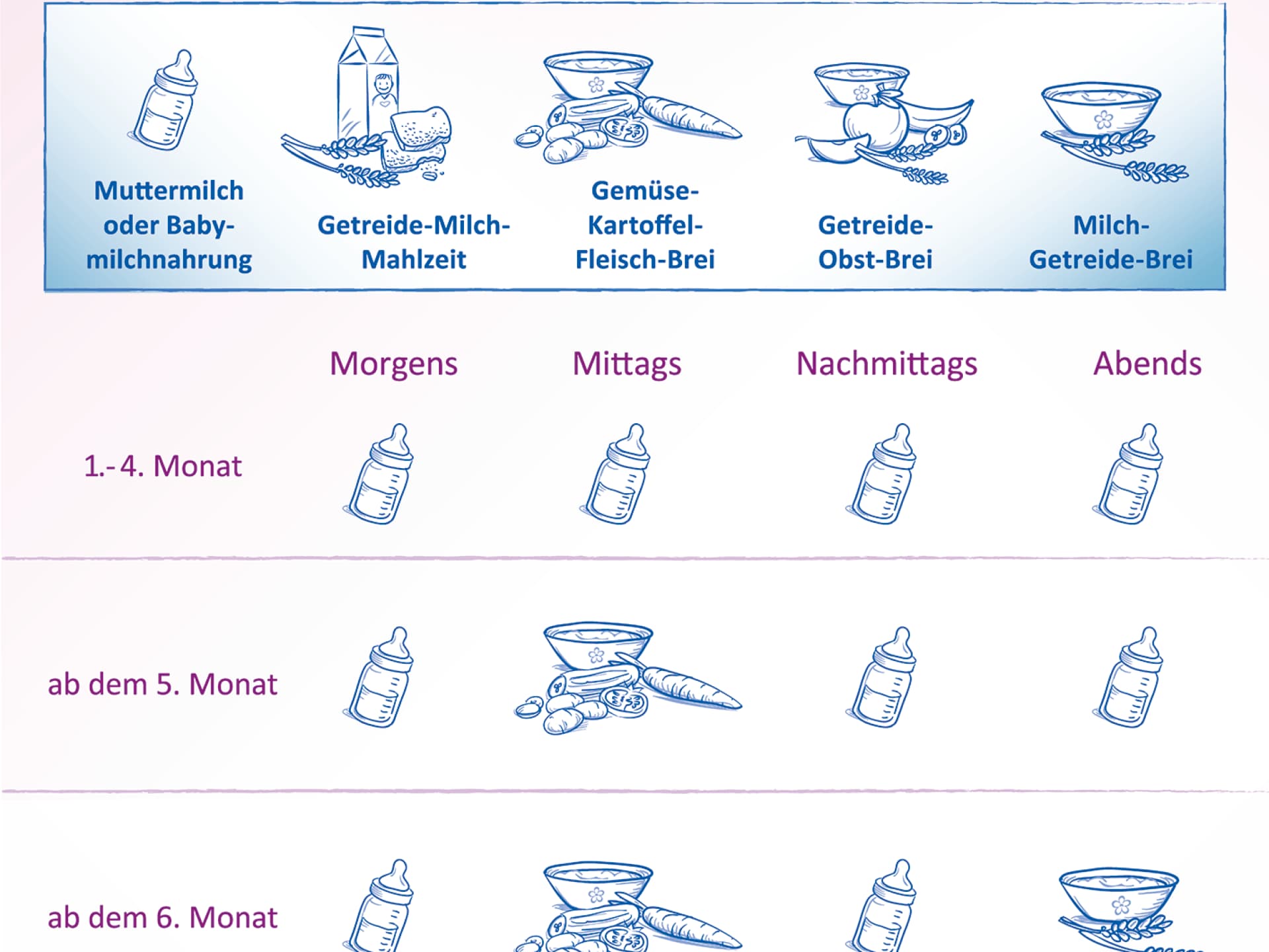 3. nachmittags: einen Getreide-Obst-Brei (frühestens ab dem siebten Monat).