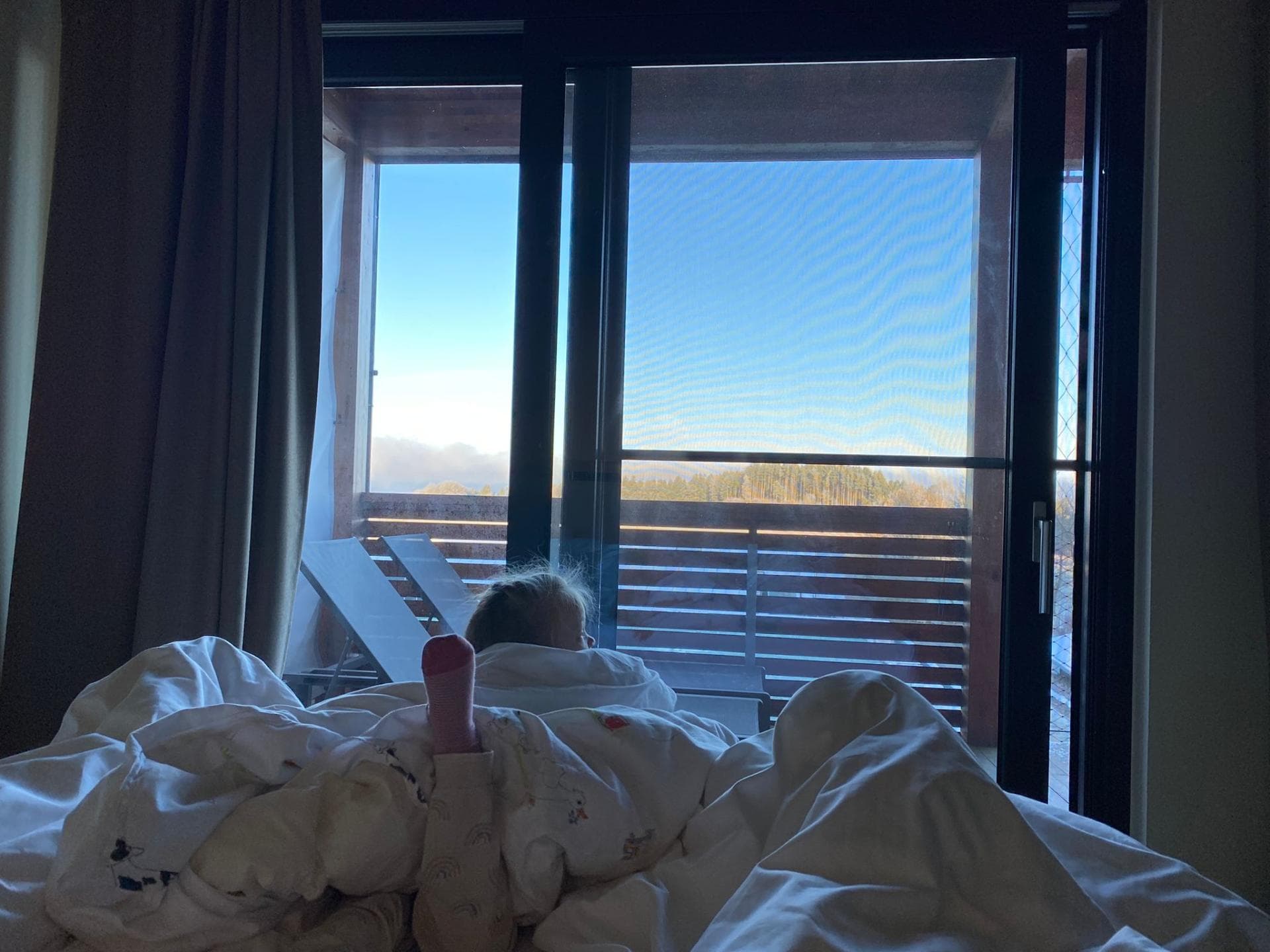 Wir wussten vor der Reise schon: Auf Toilettensitz, Baby-Phone und Kinder-Bademantel können wir beim Packen verzichten. Denn all das gehört sowieso zur Standard-Ausstattung im Hotel. Auch sonst merkt man im Zimmer: Hier wurde mitgedacht. Es gibt einen Tritt im Bad sowie aufklappbare Barrieren an den Kinderhochbetten, damit kein Mini aus dem Bett purzeln kann. Doch das Schönste an unserem Zimmer: Der Blick ins Grüne und auf die Ponys, auf die sich meine Tochter schon die ganze Zeit gefreut hat.