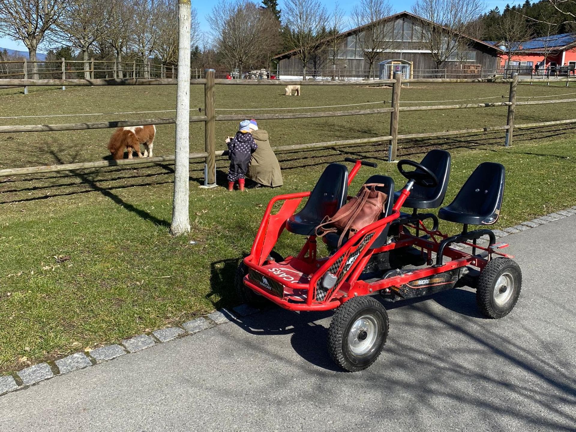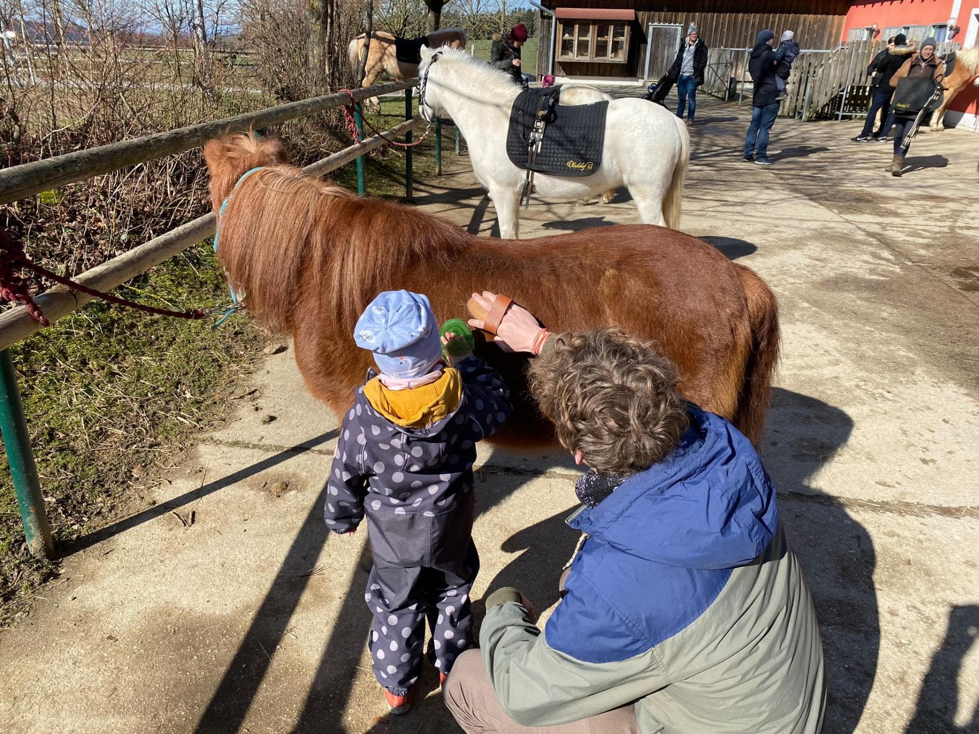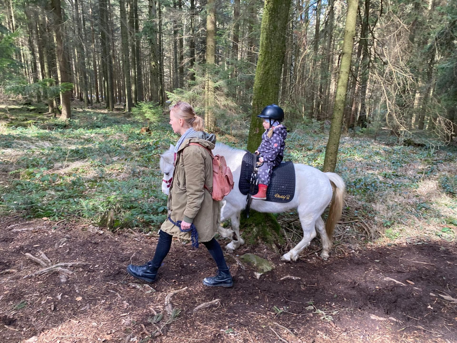 Statt auszupacken, entdecken wir den Rest des Hotels. Neben dem großen Indoor-Spielplatz neben der Rezeption gibt es noch eine Spiel-Garage mit Bobby Cars, Dreirädern, Bällebad und Co., ein Kino mit Film-Programm für Groß und Klein und ein Spaß-Bad mit Rutschen und Piratenschiff. Und das war nur drinnen! Draußen ging es weiter mit einem riesigen Spielplatz inklusive Trampolin, Seilrutsche, Tipis und Ziegen-Streichelzoo. Und das absolute Highlight für unsere Tochter: der angeschlossene Reitstall mit der Möglichkeit, jeden Tag Ponyreiten zu gehen (wir waren drei Mal!). Das Tagesprogramm auszufüllen war echt kein Problem. Zusätzlich gab es noch Angebote wie Kinderschminken, Kindertanzen, Schnitzel-Jagd durch den Wald, Stallzeit bei den Pferden mit Striegeln, Füttern und Ausmisten oder eine Pool-Party. Aber alles verteilte sich so gut, dass man nicht das Gefühl hatte im Dauer-Bespaßungs-Paradies festzustecken.