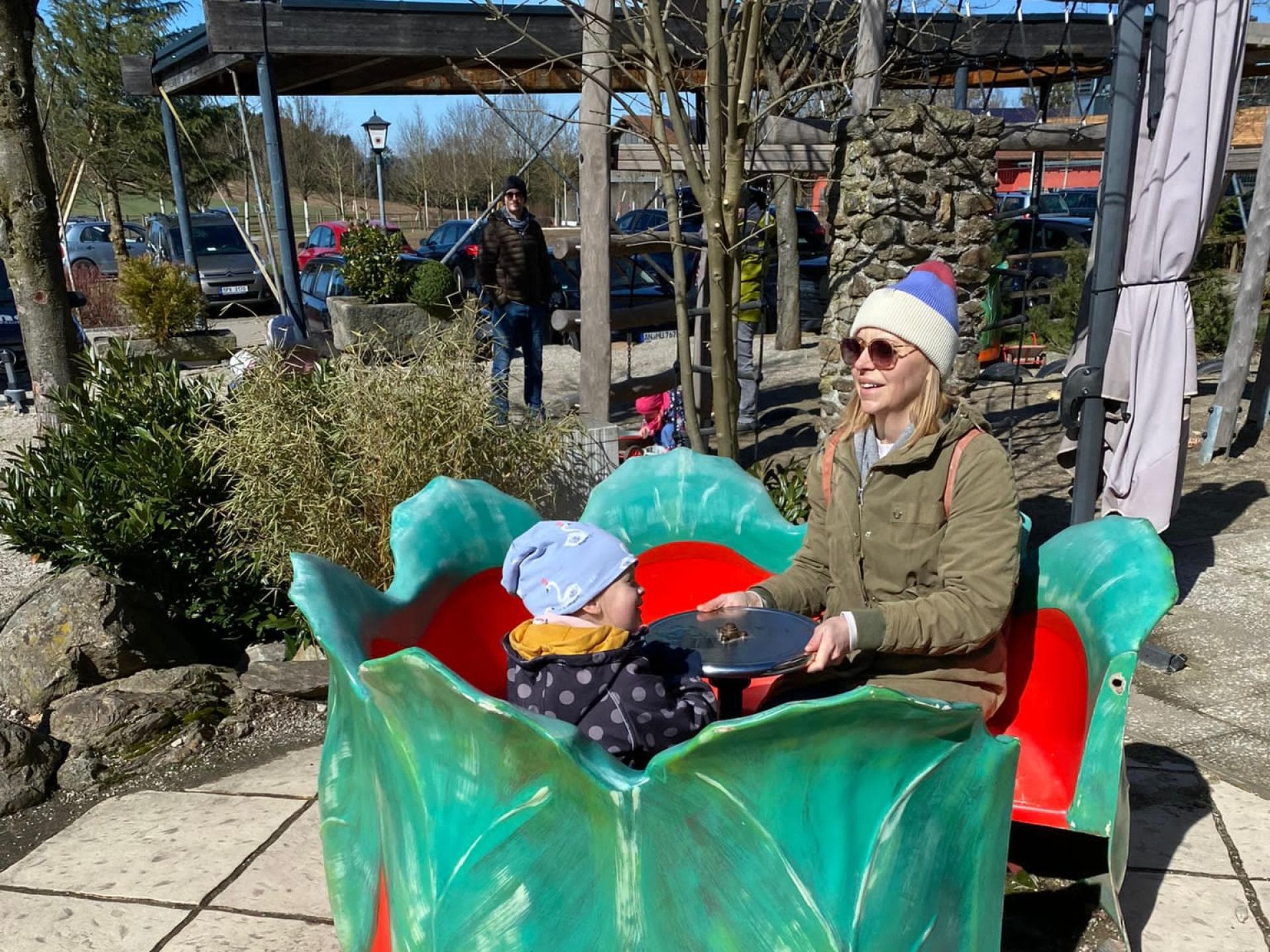 Im ganzen Restaurant saßen, na klar, nur Familien. Niemanden störte es, dass Kinder etwas lauter waren oder in den Gängen spielten (hier standen sogar Spielhäuser für die Kids). Auf den Sitzplätzen lagen Stifte und Malvorlagen und es gab die Möglichkeit, jeden Stuhl mit einem Aufsatz passend für Kleinkinder zu machen. Am Buffet konnten wir aus circa fünf Hauptspeisen auswählen, die alles andere als "Pizza, Pommes und Spaghetti" riefen und hübsch angerichtet wurden. Es gab natürlich auch typisches Kinderessen – aber selbst das sah lecker aus. Und für Babys gab es sogar eine ganze Brei-Station mit allen möglichen Sorten.