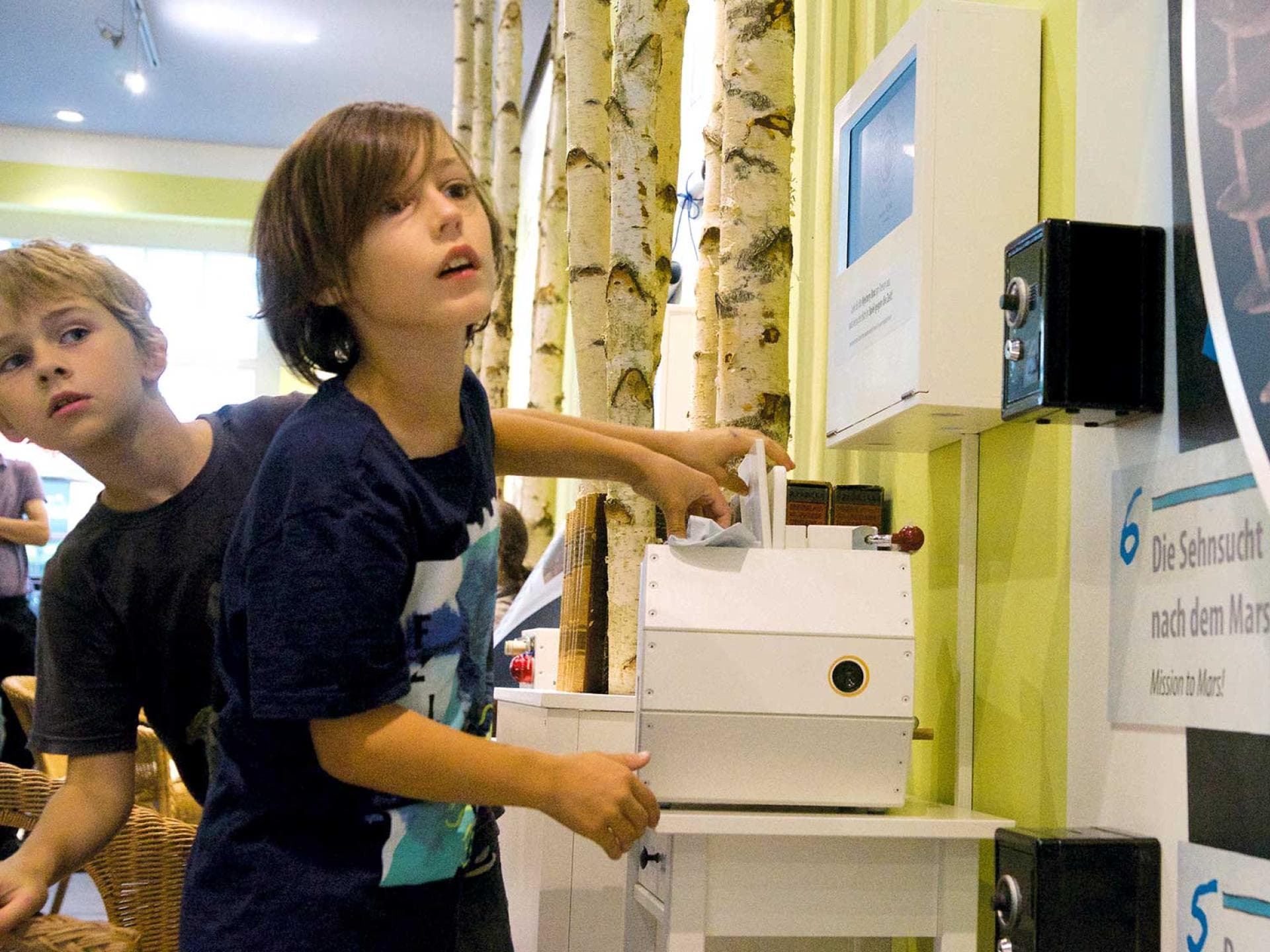 In der Mitmachaustellung warten spannende Stationen wie eine Wärmebild-Selfiewand, eine Schokokuss-Pumpe oder ein Podcaststuhl darauf, von den Kindern entdeckt zu werden.