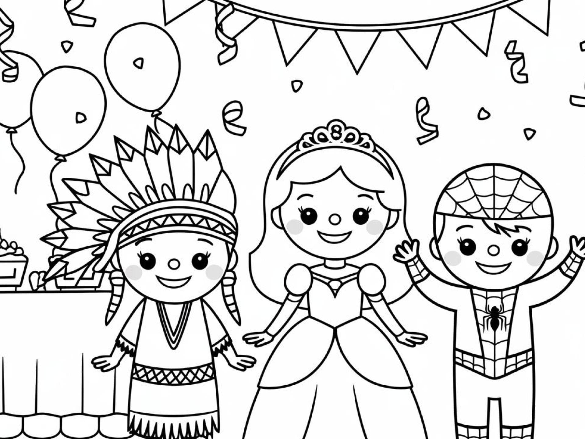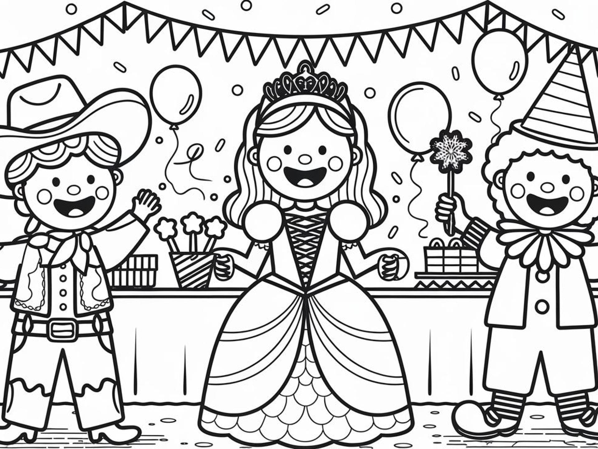 Dieses Ausmalbild eignet sich auch schon für kleinere Hände, die noch nicht ganz so zielsicher beim Ausmalen sind. Cowboy, Prinzessin und Spiderman kommen bei den kleinen Karnevalisten als Motiv bestimmt gut an.