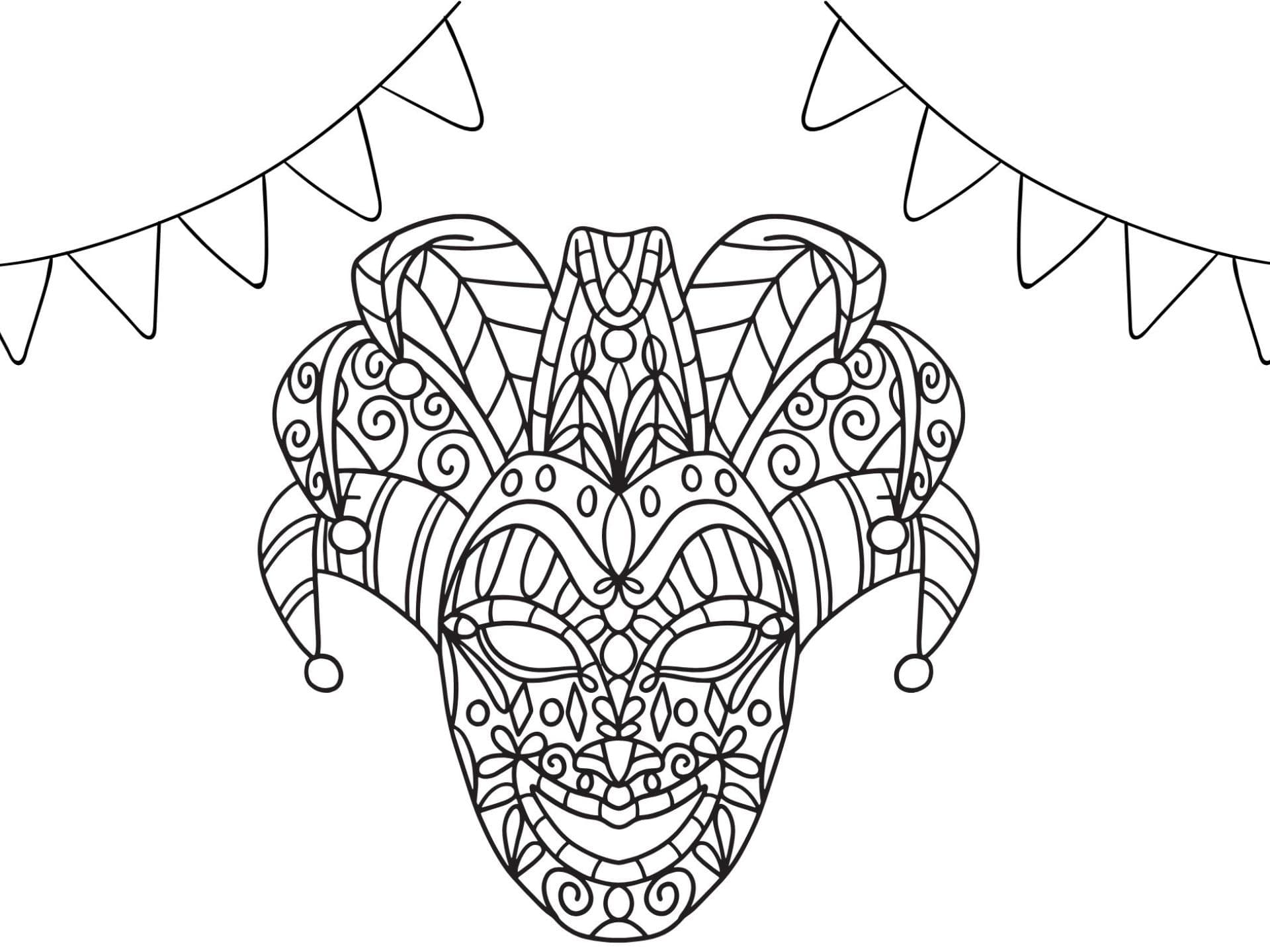 Diese Malvorlagen eignen sich besonders für Kinder, die schon etwas geübter im Umgang mit Stiften sind. Gerade die Faschingsmaske im Mandala-Stil wird bestimmt ein richtiges Kunstwerk.