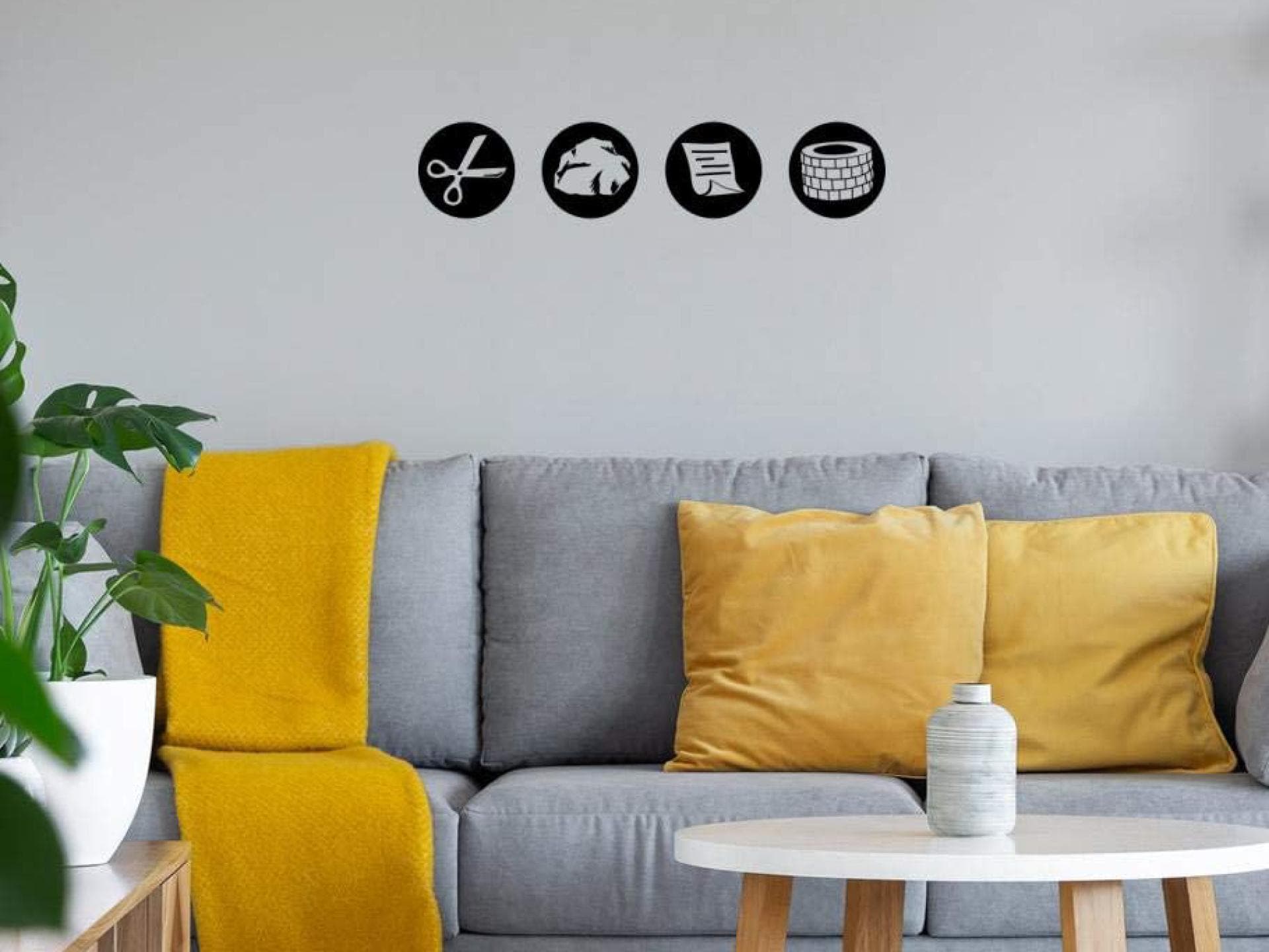 Wer will sich hiermit sein Wohnzimmer verschönern? Eine witzige Idee sind diese Wand-Tattoos mit den Schnick-Schnack-Schnuck-Zeichen allemal. Den Aufkleber gibt es in verschiedenen Größen von 40x8 bis 220x46 cm. Von der Größe abhängig variiert dann auch der Preis.