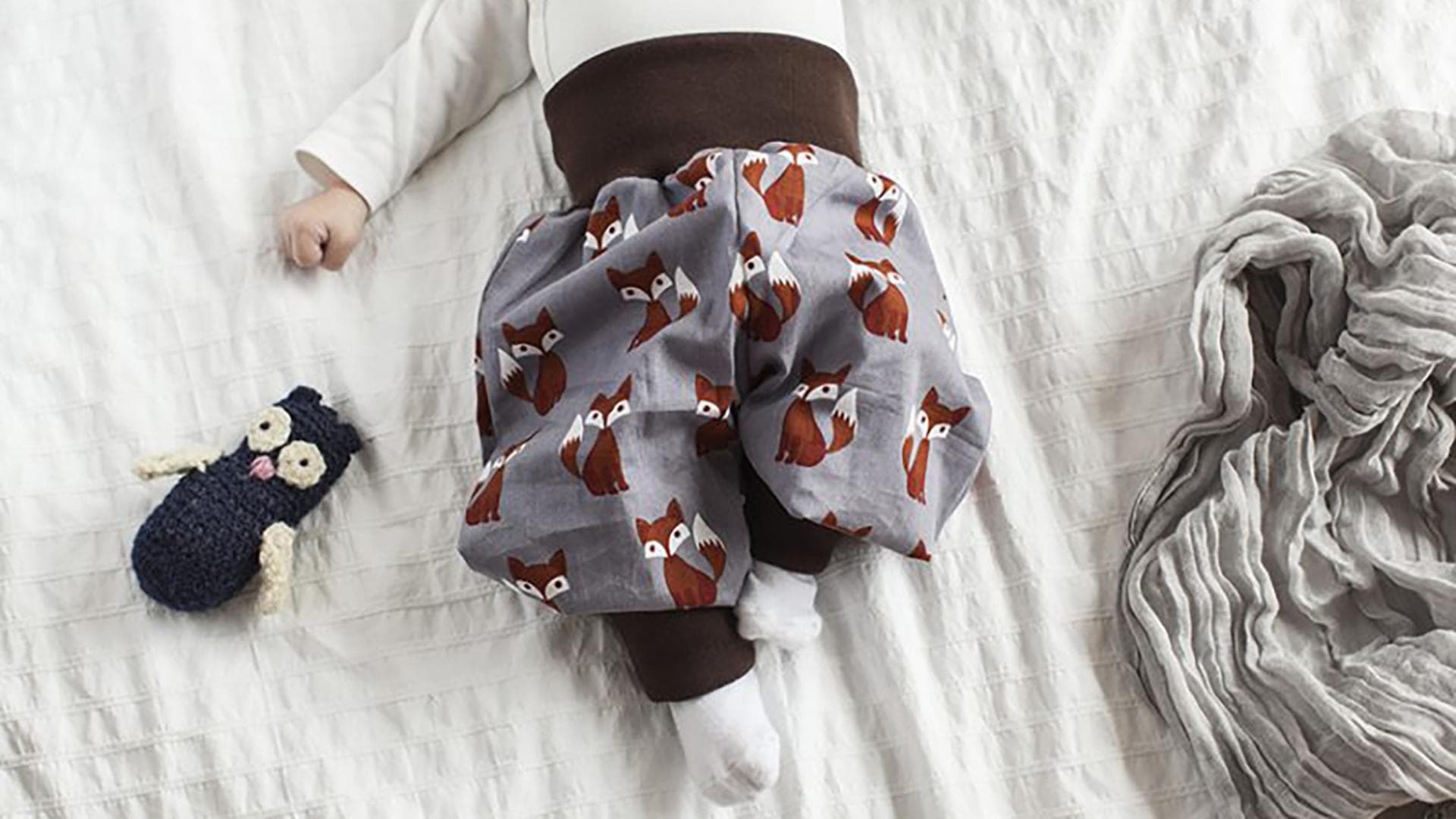 Eine Babyhose zu nähen ist, mit dem richtigen Schnittmuster, eigentlich ganz einfach. Der Klassiker sind Pumphosen aus Jersey, die sich durch einen hohen Bund, weites Bein und schmale Bündchen am Fuß auszeichnen. So stört die Kleinsten nichts beim Liegen, gleichzeitig ist maximale Bewegungsfreiheit gewährt und es rutscht nichts hoch oder runter. Ein weiteres Plus: Dank des großzügigen, lockeren Schnitts wachsen Pumphosen mit und können vergleichsweise lange getragen werden.
