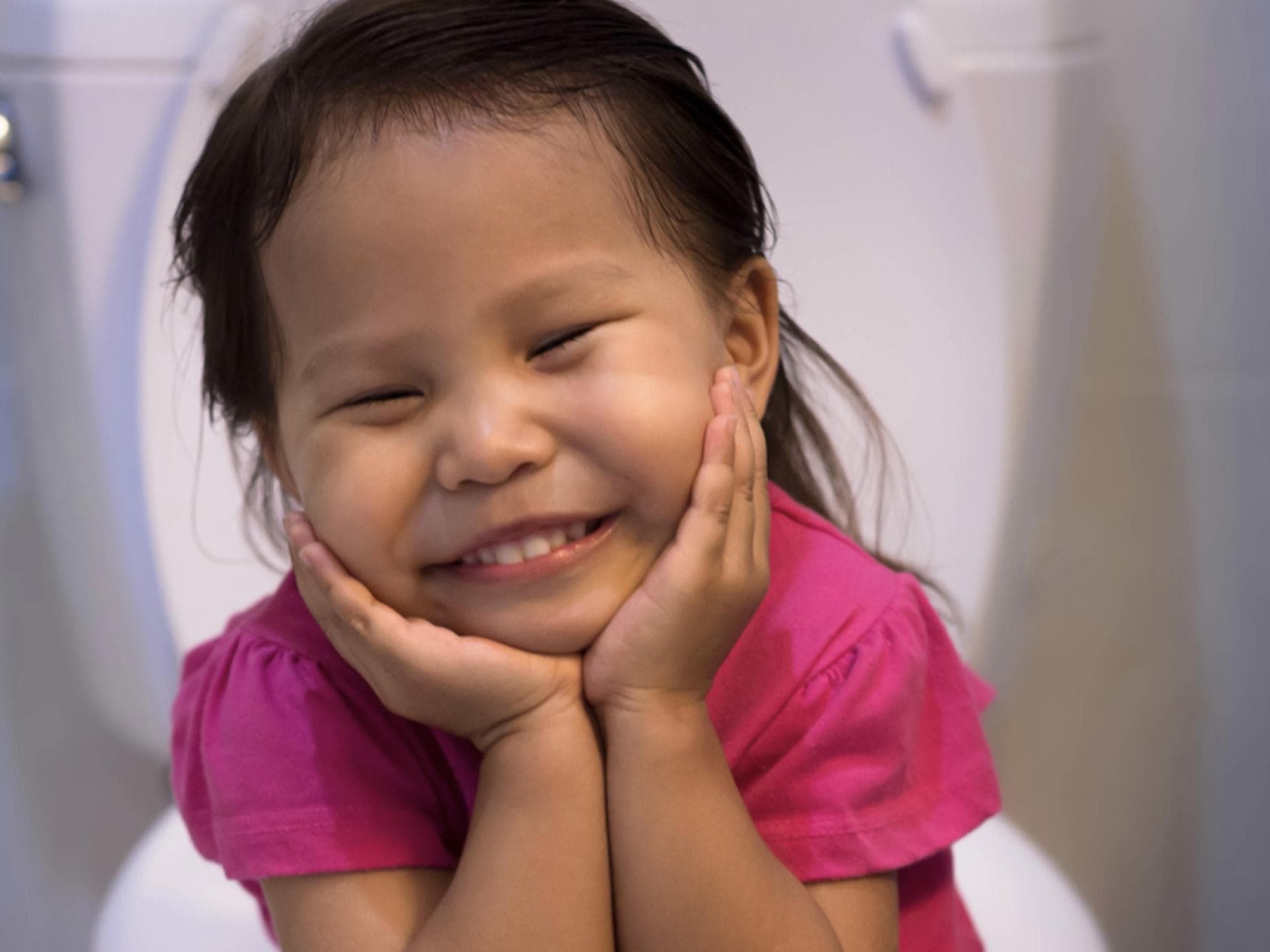 Mitunter kommt richtig Freude auf, wenn man das große Geschäft erledigt hat! Auf dem Gesicht dieses Mädchens liest man pure Erleichterung.