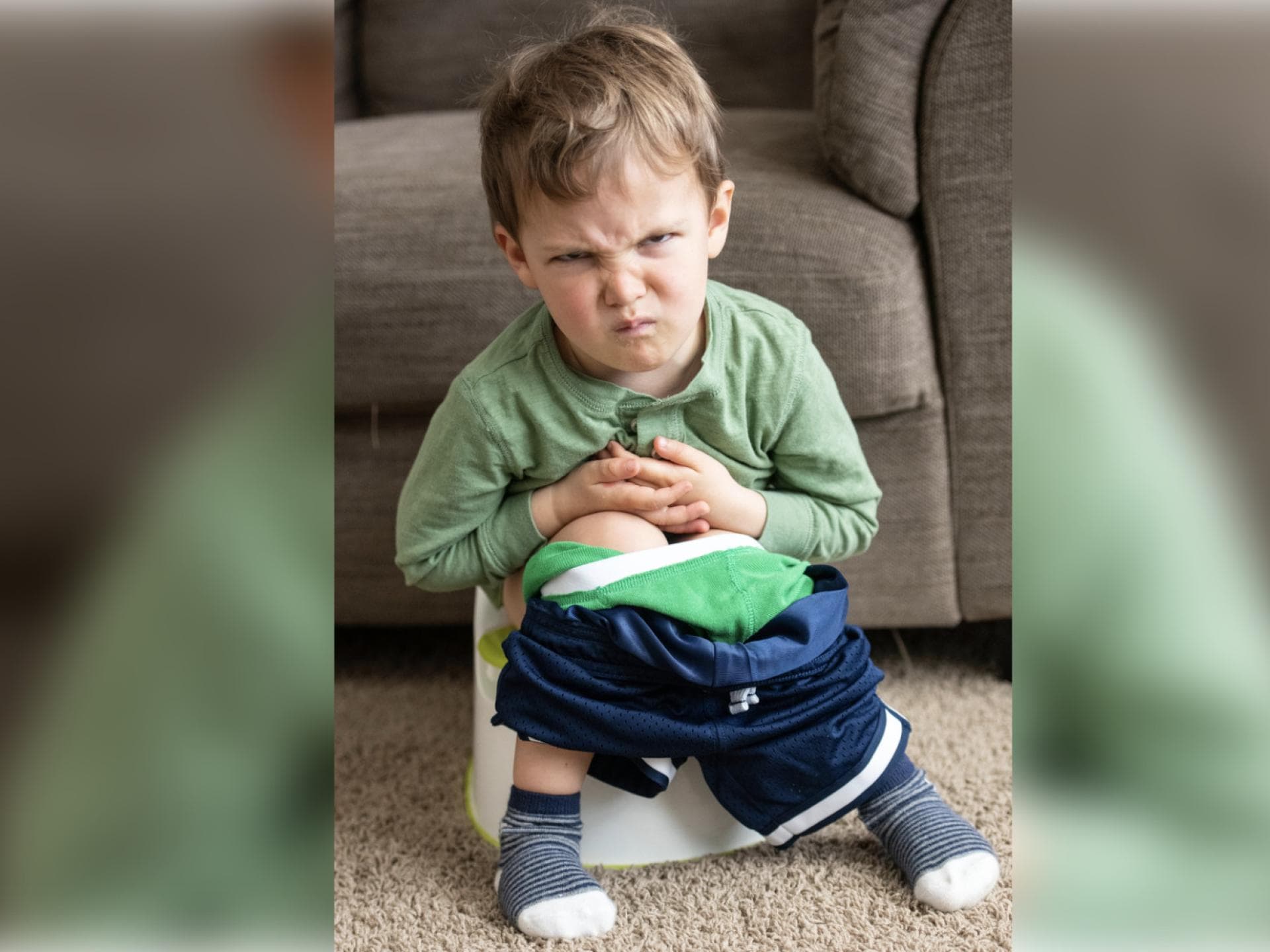 Das Kacken kann auch in einen richtigen Kampf ausarten. Dieser Junge sieht auf seinem Töpfchen ganz schön wütend aus. Oder mag er dabei einfach nicht fotografiert werden und ist deshalb sauer?