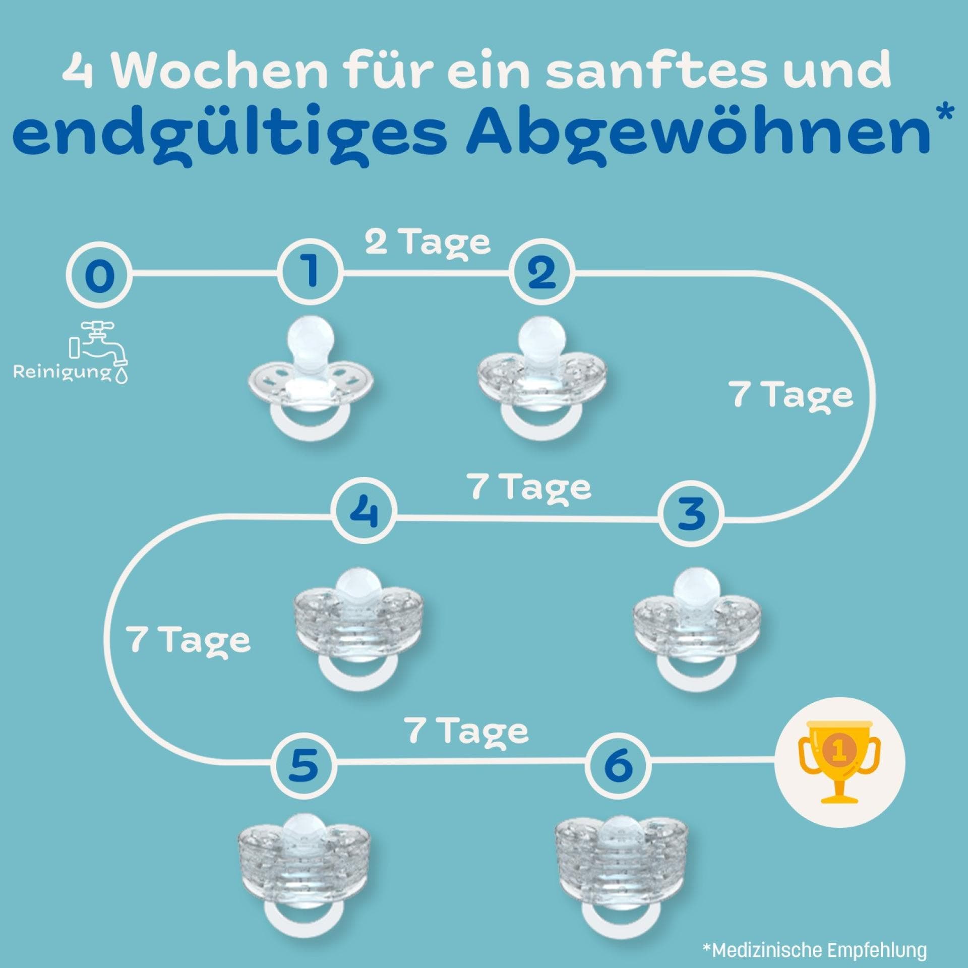 Clipp ist kein klassischer Schnuller, sondern ein pädagogisch durchdachtes Hilfsmittel, das den Abschied vom Schnuller von Beginn an mitdenkt. Entwickelt wurde das Konzept von einem Spezialisten für dentofaziale Orthopädie – und Vater. Aus dieser fachlichen wie persönlichen Perspektive entstand ein klar strukturierter Ansatz: Der Schnuller bleibt zunächst ein vertrauter Begleiter, verändert sich jedoch schrittweise.