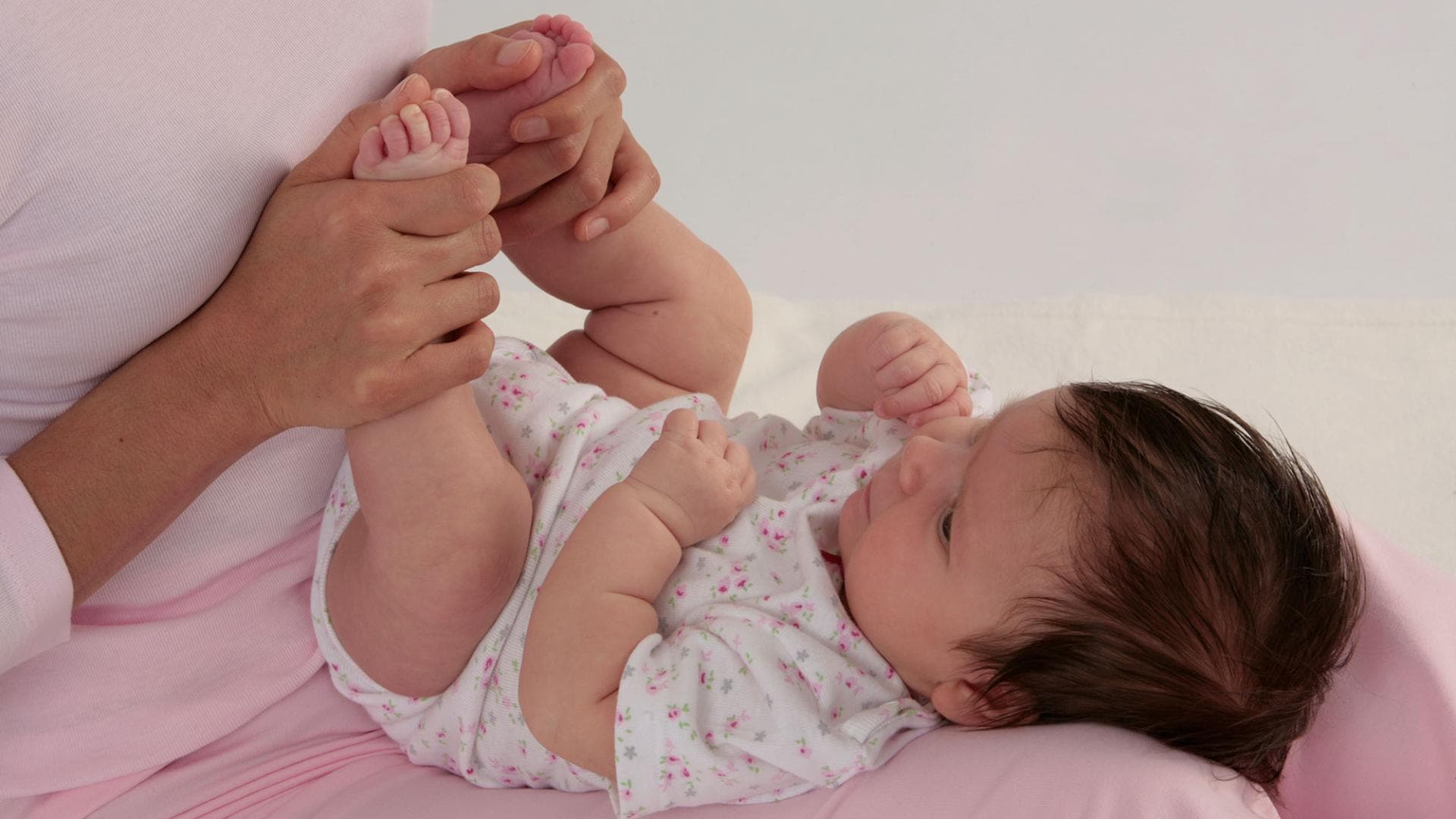 Aus unserem Workout für Winzlinge die Übung "Gute Nacht!": Umfassen Sie die Fußgelenke Ihres Kindes und üben Sie jeweils mit einem Daumen für ein bis zwei Minuten etwas Druck auf die Vertiefung in der Fußsohle aus. Dieser Punkt heißt "Sprudelnder Quell". Die Berührung dieses Punktes beruhigt und fördert den Schlaf.