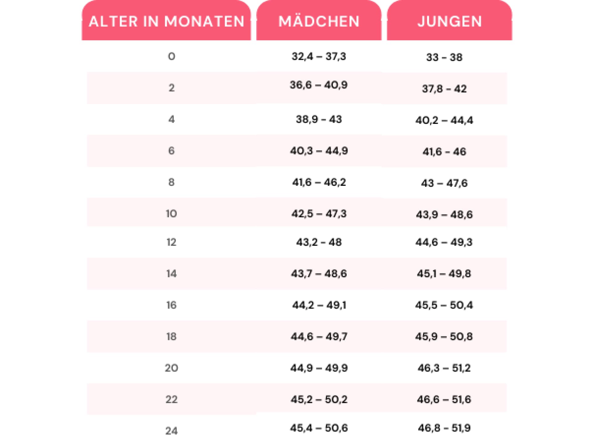 - Kopfumfang-Tabelle für Jungs und Mädchen bis 2 Jahre