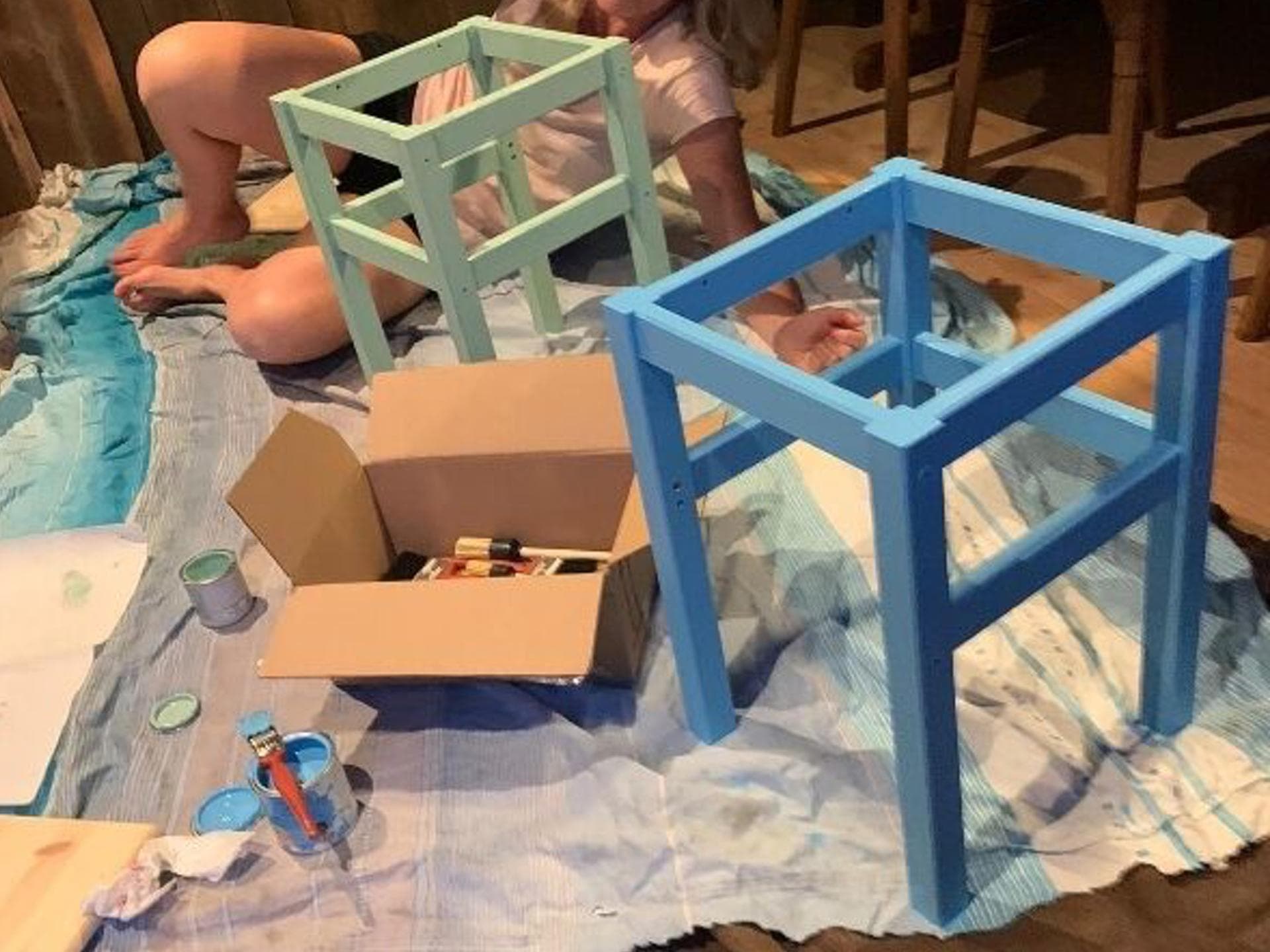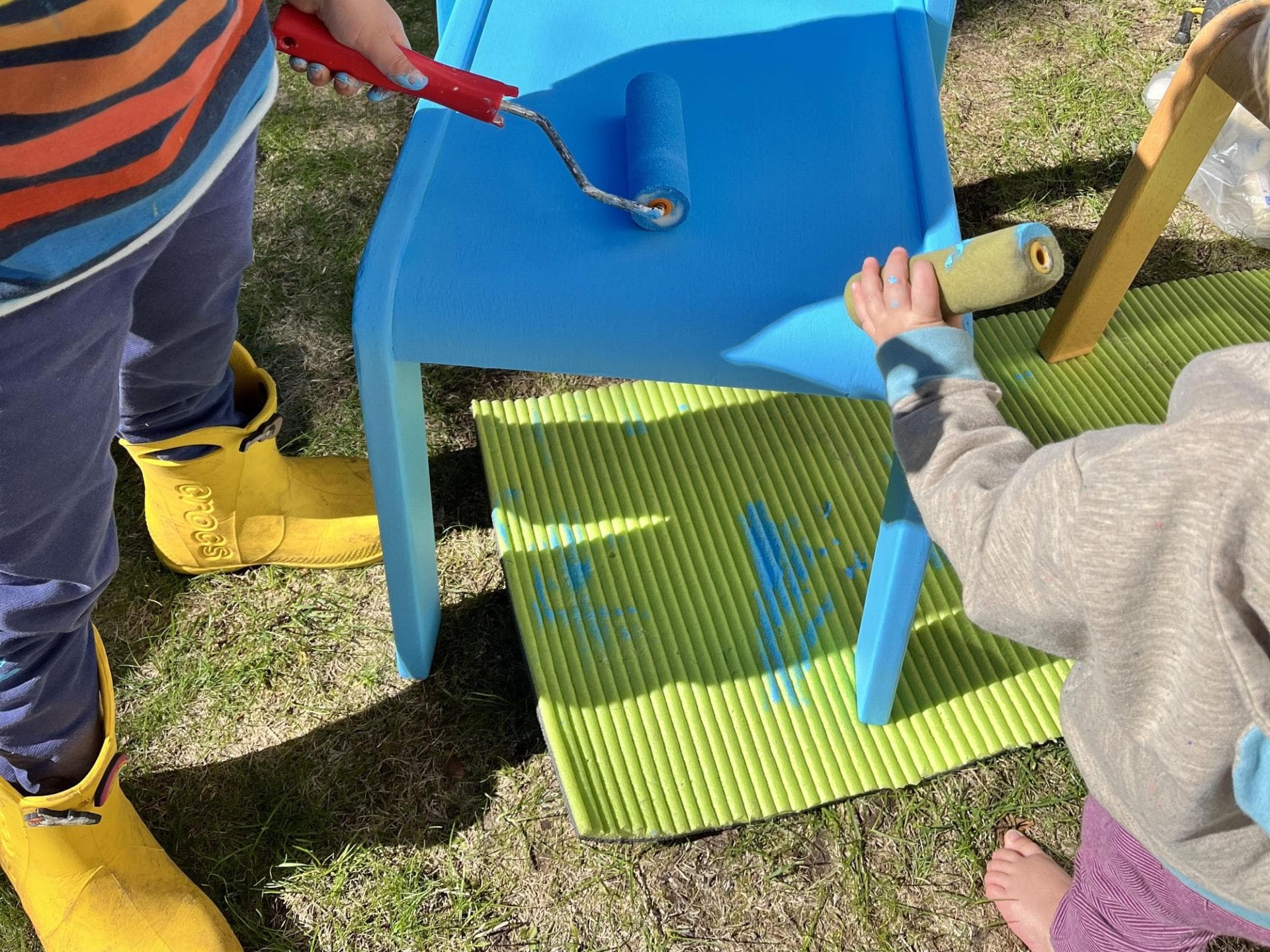 Lange haben wir überlegt, wofür die Farben perfekt passen würden. Die Mengen war nicht ganz ausreichend für einen kompletten Wandanstrich, daher haben wir uns dazu entschlossen, die Farben bei der Renovierung meiner zukünftigen Eltern-Kind-Kursräume anzuwenden. Mit den Wandfarben haben wir Kartons angemalt und diese werden zukünftig als Höhlen für die Kleinen dienen. Die magnetische Tafelfarbe lässt sich, genau wie der normale Tafellack, sehr gut verstreichen. Leider ist die Magnetkraft doch sehr schwach. Sie ist natürlich dennoch ein Highlight. Die Möbelfarbe lässt sich genauso leicht verarbeiten, wie der Tafellack. Was heraussticht, ist die Geruchsneutralität aller Farben! So habe ich mit meinem kleinen vierjährigen Sohn und meiner einjährigen Tochter einen Stuhl zusammen gestrichen. Ob die Farbe nun wirklich die Luft reinigen, kann ich natürlich nicht sagen. Jedoch ist es schön, dass man einen Weg gefunden hat Lacke zu entwickeln, die nicht tagelang giftig aus dünsten. Die Farben sind sehr schön und von guter Qualität. Wir werden sie mit Sicherheit bei der nächsten Renovierung benutzen.