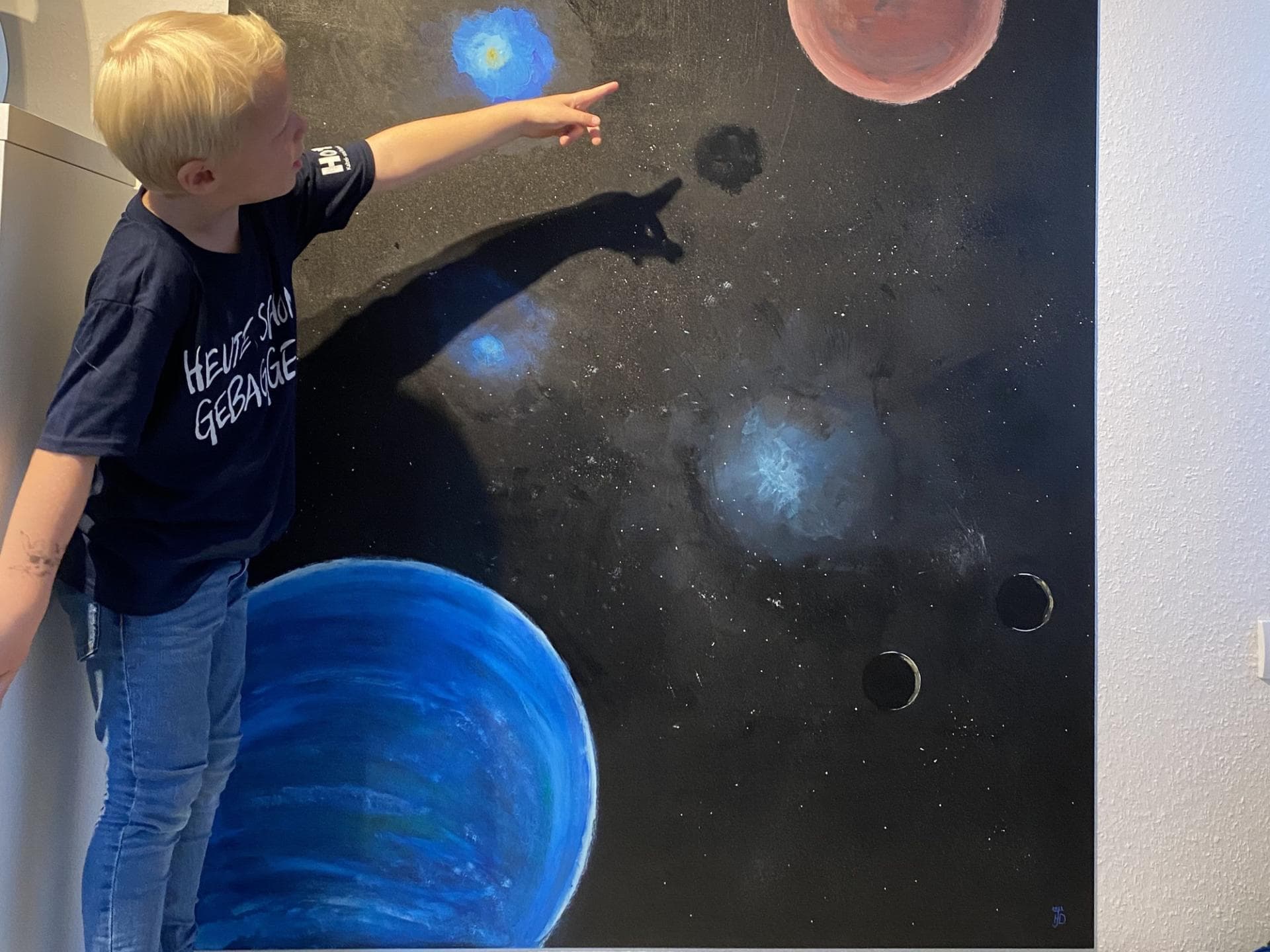 Durch den Produkttest habe ich tatsächlich das erste Mal von luftreinigender Wandfarbe gehört. Aber was soll ich sagen, ich war sofort begeistert. Auf der Homepage von Rust-Oluem habe ich schnell Inspirationen gefunden, die wir für unsere Projekte anwenden konnten. Unser Thema war Weltraum, wir wollten das Kinderzimmer für unseren fünfjährigen Sohn umgestalten. Die Farben sind super, die Deckkraft ist klasse und die Farben ließen sich super verarbeiten. Der Geruch der Farben hat uns überzeugt, die Geruchsintensität war wirklich super gering. Wir empfehlen die Farben definitiv weiter und würden auch definitiv wieder darauf zurückgreifen. Danke, dass wir dabei sein durften.