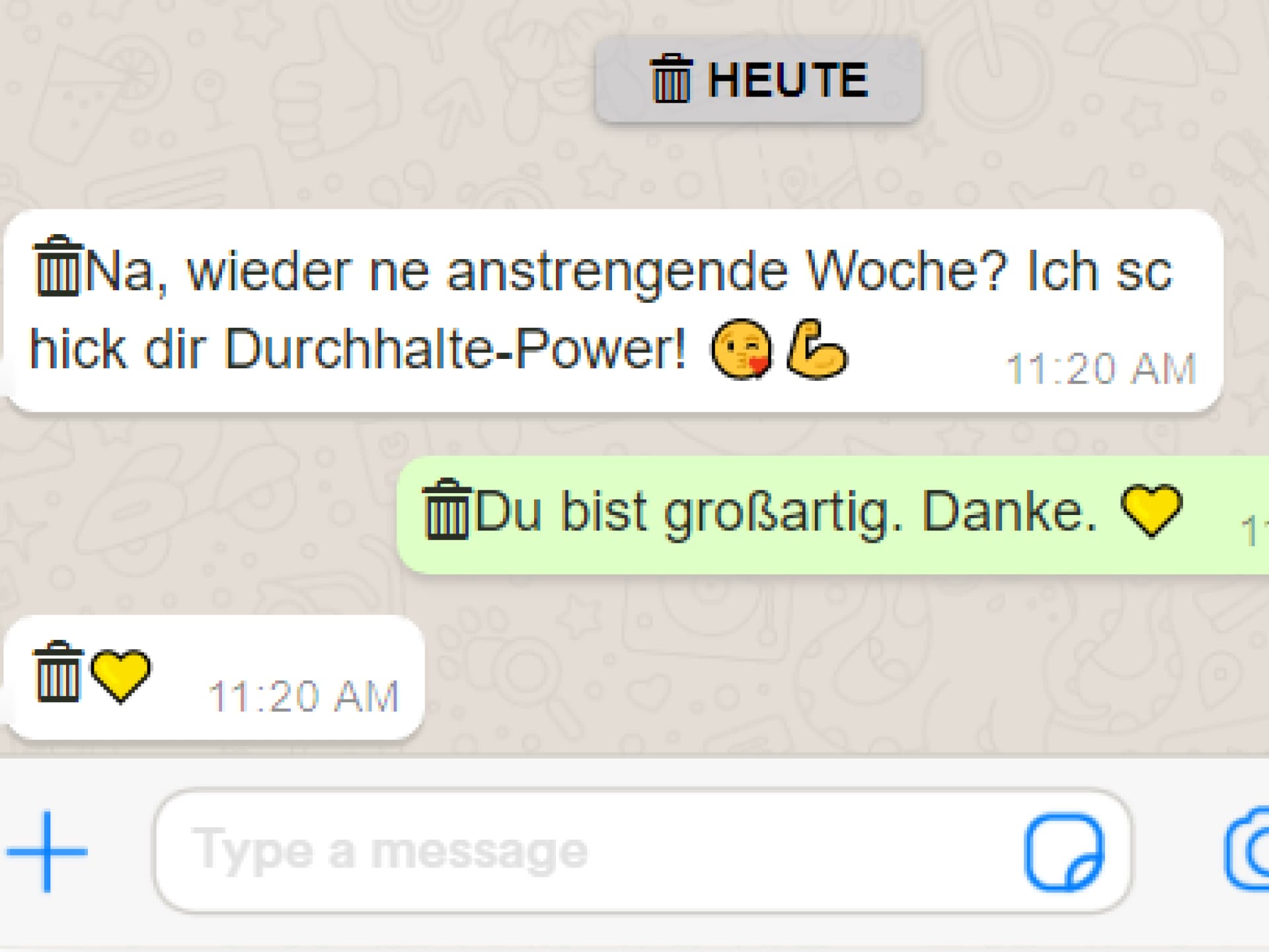 Da piept mein Handy. Eine Nachricht von dir: "Na, wieder ne anstrengende Woche? Ich schick dir Durchhalte-Power!" Dahinter ein Kuss-Smiley und ein Muskel-Emoji. Mir schießen sofort die Tränen in die Augen.