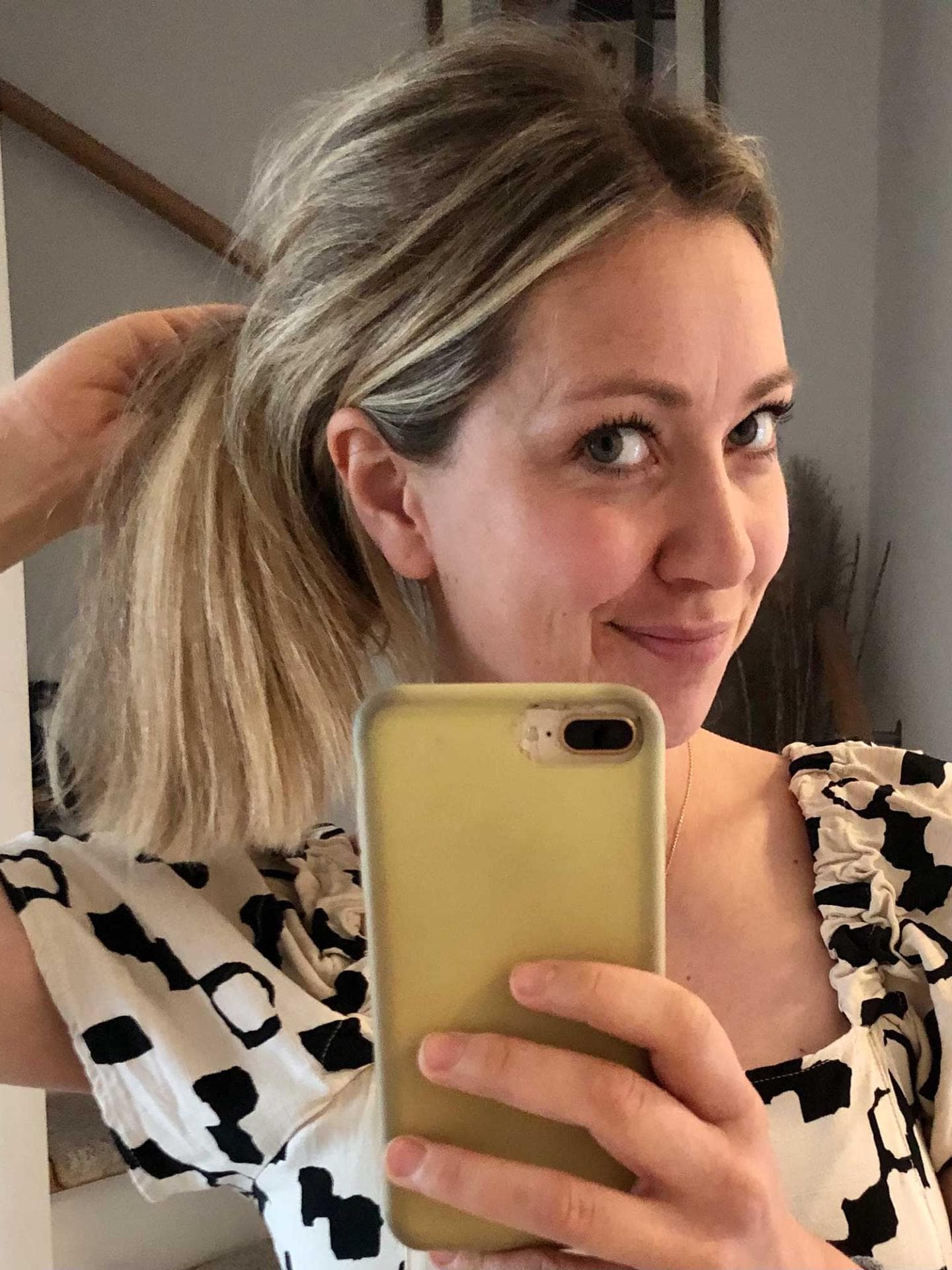 Wer jetzt sagt: Nun heul nicht rum und mach dir einfach einen Zopf! Dem pflichte ich bei: Ist bei drei kleinen Jungs, die gern mal Mamas Haare zusammenzwirbeln ohnehin besser. Jaha, zum Glück ging der Zopf auch geeerade noch so zusammen zu binden. Sieht jetzt sieht aber eher aus wie ein abgeschnittener Pinsel.