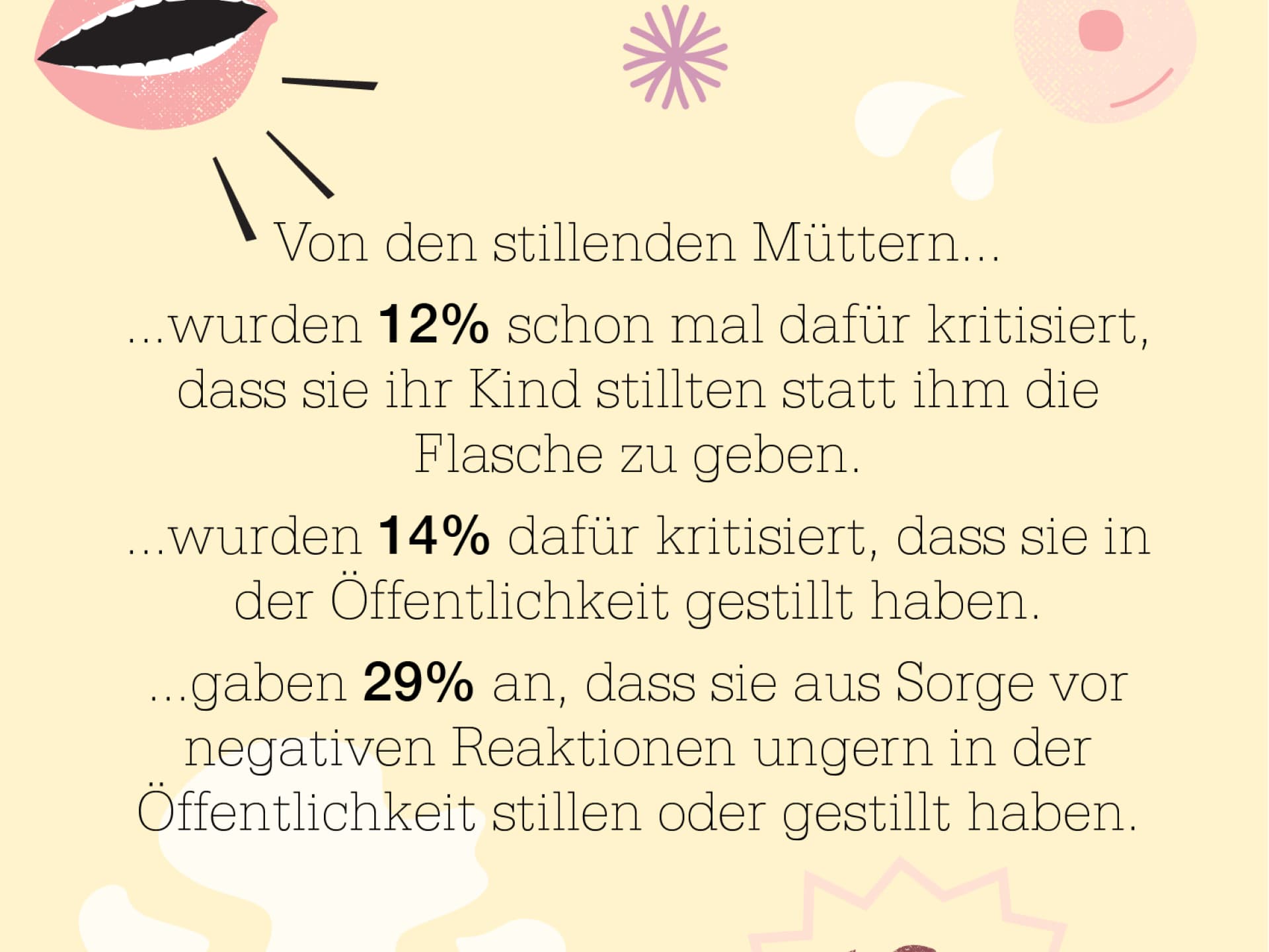 Auf Twitter starte ich einen Aufruf: Ich frage nach Erfahrungen zum Thema "Mom-Shaming". Svenja aus Wien schreibt mir, dass ihr erstes Kind ein Schreibaby war. "Kein Wunder, dass er so schreit, wenn du nur auf der Couch liegst und ihn stillst" gehört zu den harmlosen Dingen, die sie sich vorwerfen lassen musste. Dass das Stillen eins der wenigen Mittel war, die ihren Sohn beruhigten, interessierte die Kritiker nicht. Auch dass sie vier Wochen nach dem Notkaiserschnitt starke Schmerzmittel nahm und kaum aufstehen konnte. Weil ihr Kind auch später nicht aufhörte zu schreien, verlor sie den Betreuungsplatz. Mitarbeiter der Einrichtung unterstellten mütterliches Fehlverhalten als Ursache für das Schreien, drohten Svenja mit dem Jugendamt. "Haben sie etwa getrunken in der Schwangerschaft, dass er so ist?", wurde sie offen gefragt.