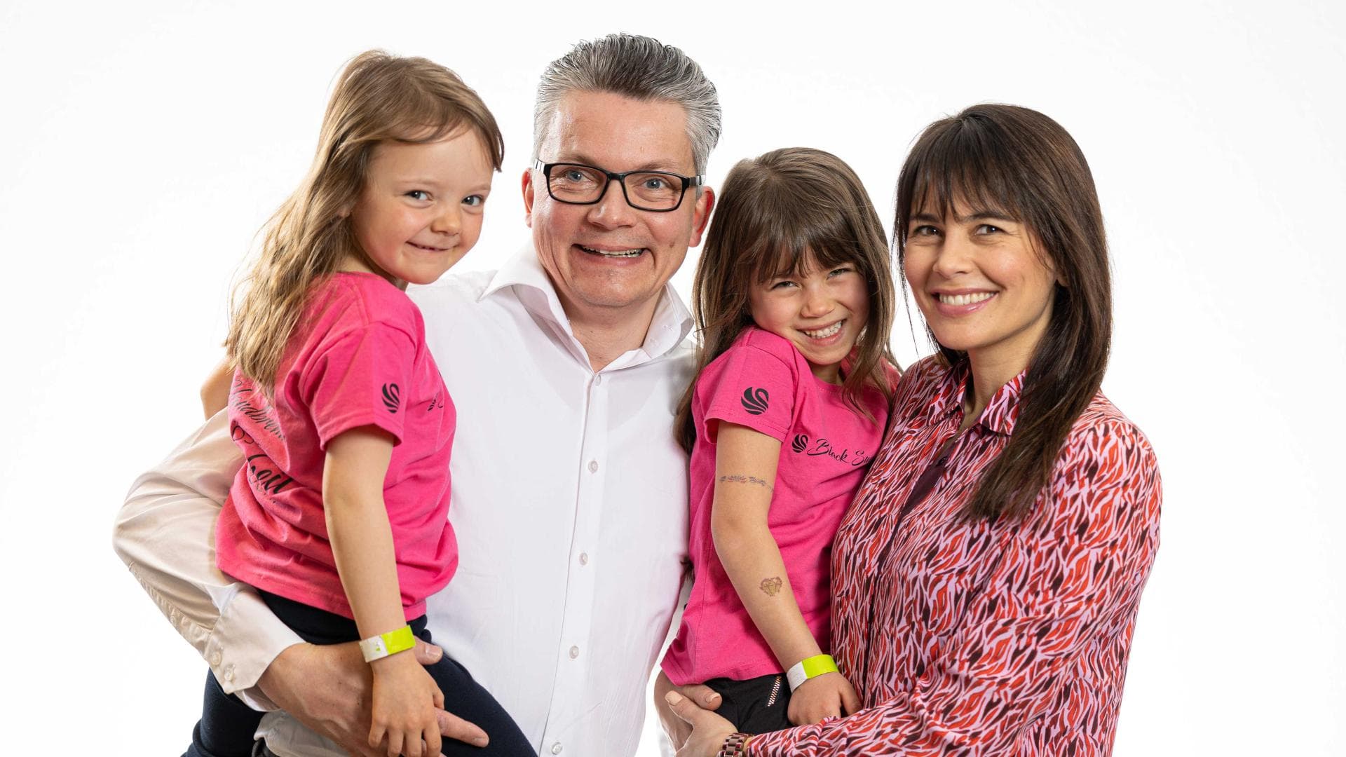 Juliane (35) mit Aileen (8), Aimée (12), Linda (11, v. l.) und Silvio (37) mit Lilith (5), Bremervörde (Niedersachsen)