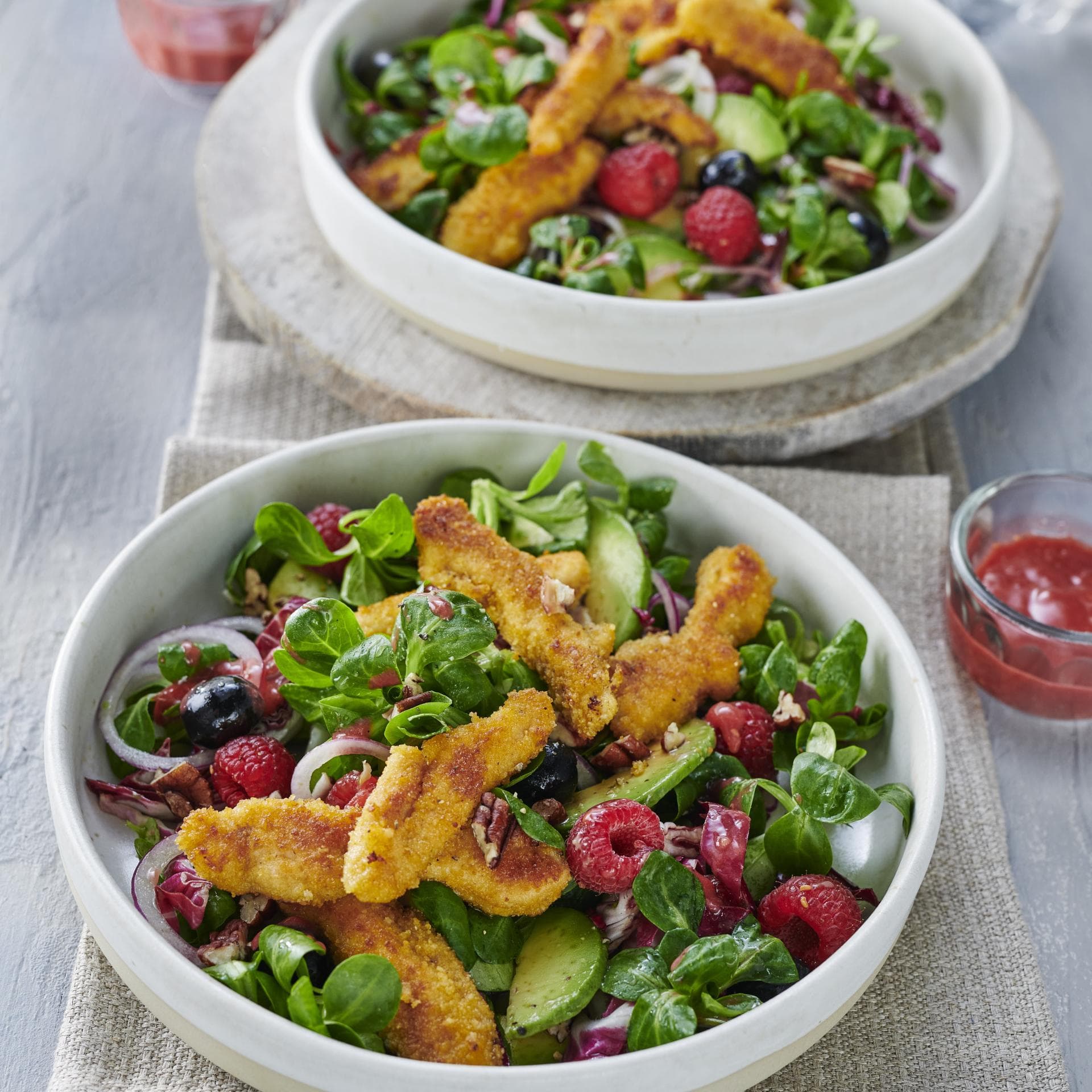 Lunch-Salat mit Schnitzelsticks (und Himbeeren)
