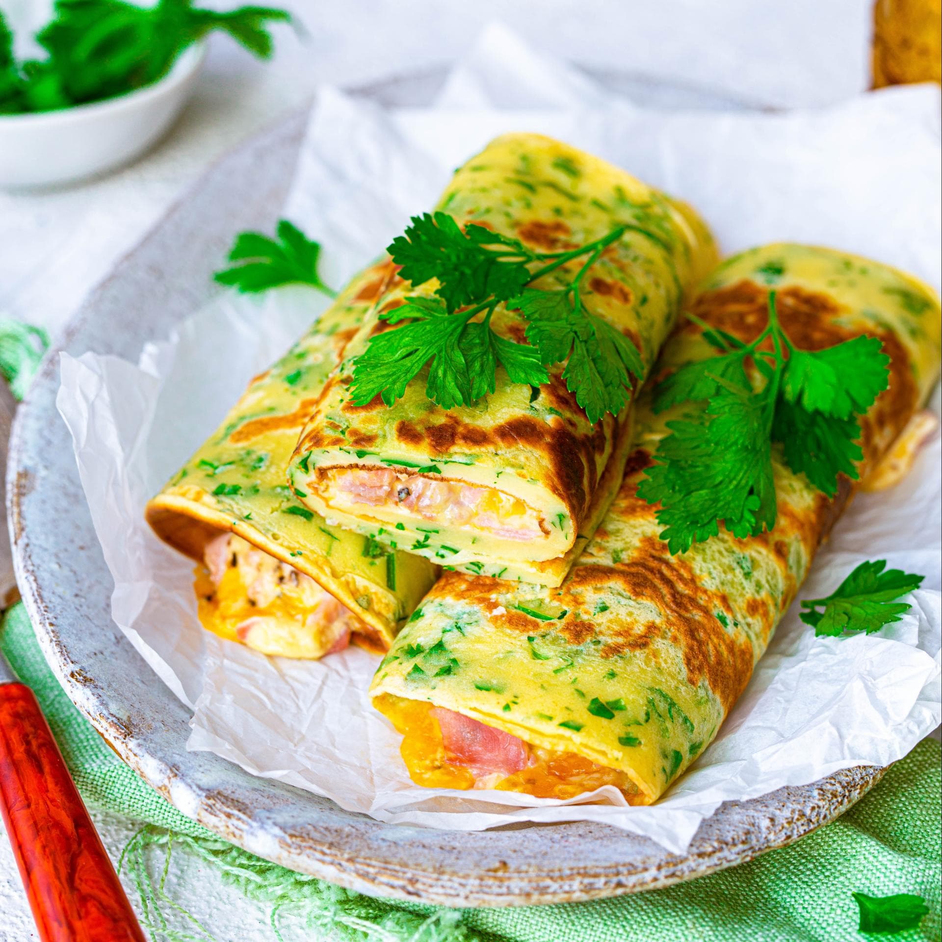 Pfannkuchen mit Schinken-Käsefüllung