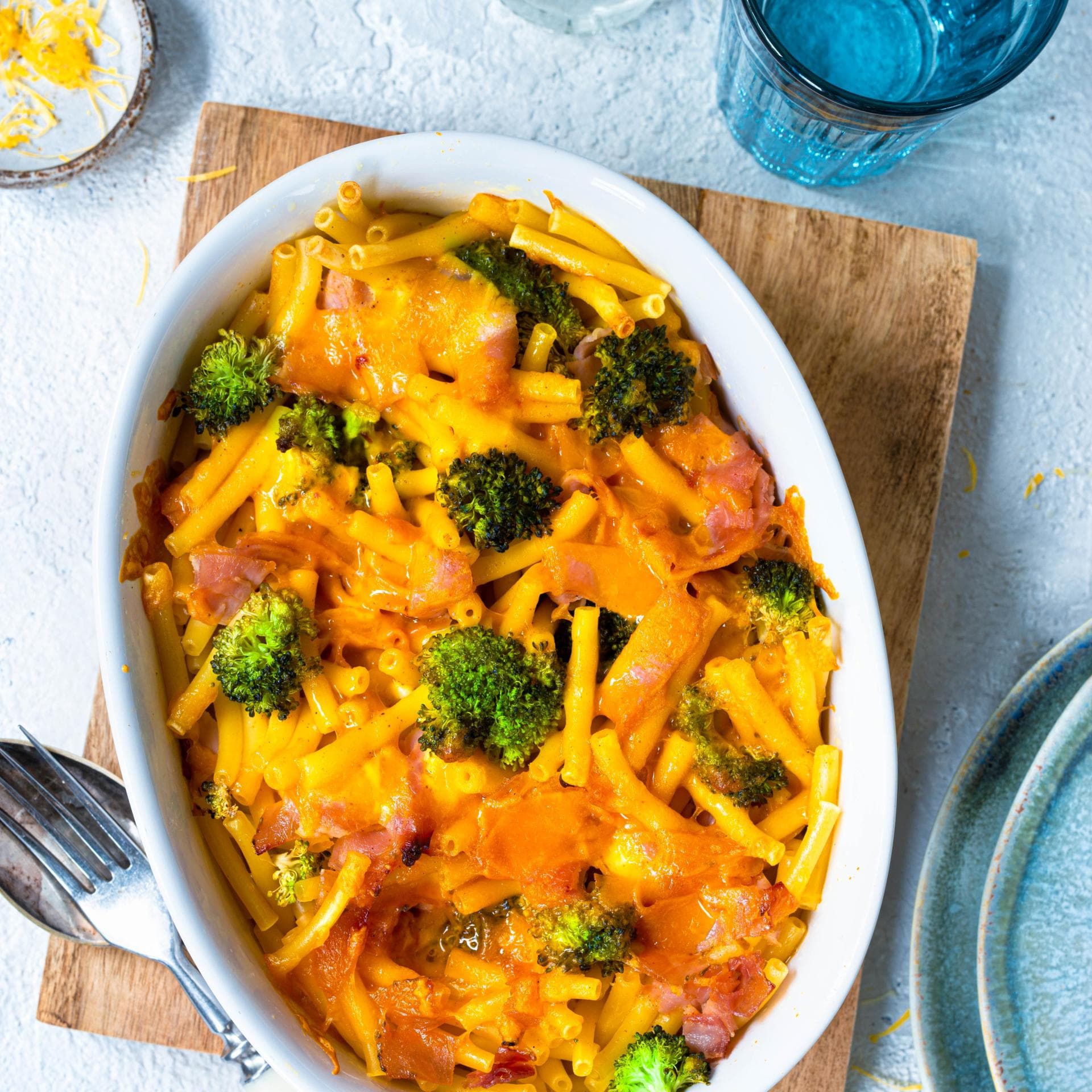 Schneller Nudelauflauf mit Brokkoli und Schinken