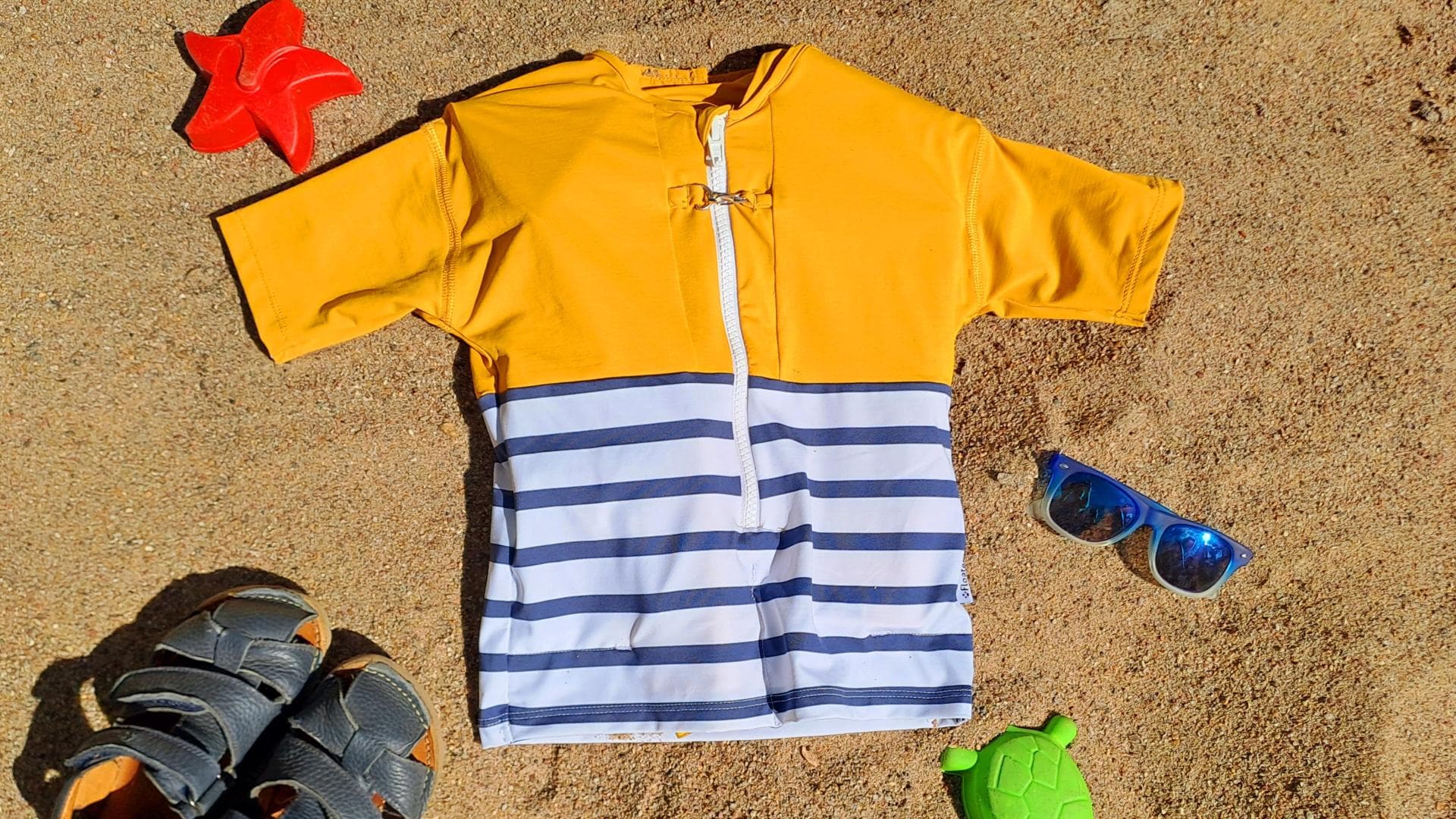 Zum Glück mussten wir die Effizienz des T-Shirts nicht erproben, aber als Eltern gibt es uns ein beruhigendes Gefühl zu wissen, dass der Dreijährige gut geschützt ist, falls er doch mal unverhofft im Wasser landet.