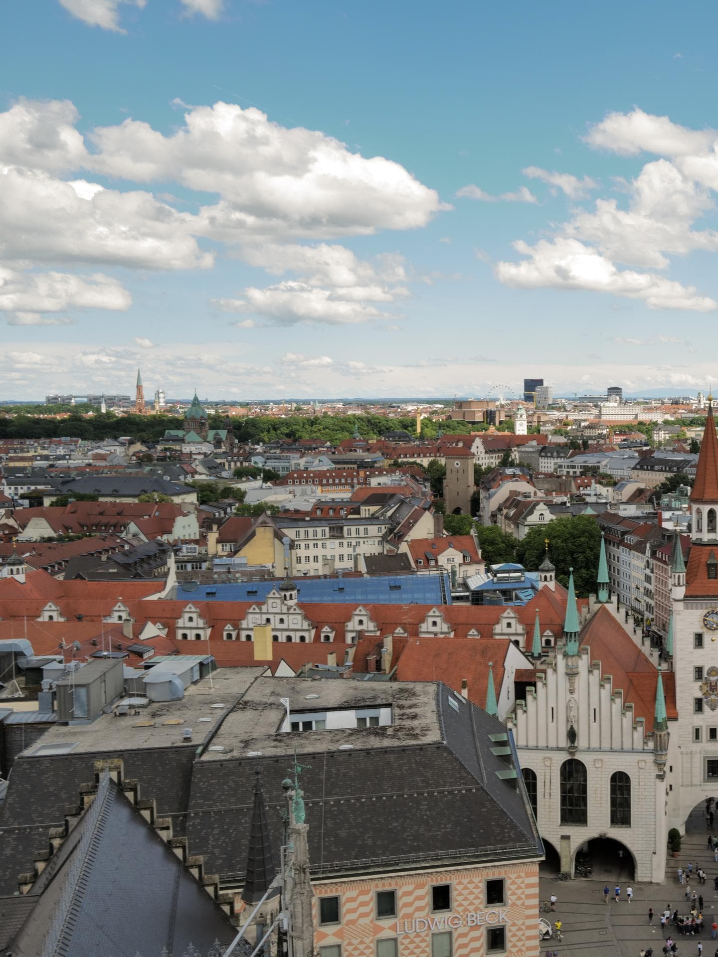 Doch zurück ins Zentrum, auf den Marienplatz im Herzen Münchens. Hier bringt der neu eröffnete Aufzug im Neuen Rathaus Besucher und Besucherinnen hoch hinauf auf die Aussichtsplattform im Turm. Dort wartet der wohl schönste Panoramablick – von der Allianz Arena bis zu den Alpen. Ein kleines großes Highlight der Stadt, das selbst so manches Münchner Kindl noch nicht kennt. Das könnte daran liegen, dass der Eingang zur Turmauffahrt etwas versteckt links neben dem Haupteingang liegt. Also, Augen auf!