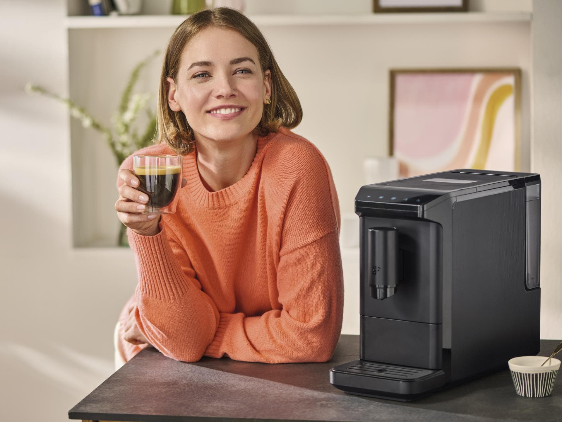 Jetzt zieht der kleinste Vollautomat der Welt ein! Auf Knopfdruck zaubert der Esperto mini von Tchibo beste Espressi und Caffè Crema – von 25 ml bis zur XL-Tasse. Der QR-Code im Bohnenbehälterdeckel sorgt für Hilfe in der App. Laut Kaffeereport haben übrigens schon 40 % einen Vollautomaten zu Hause. Dazu nachhaltige Bohnen – was ein Genuss! Und für besten Milchschaum und Kakao ist der Induktions-Milchaufschäumer gleich mit dabei. Weitere Infos findet ihr unter www.tchibo.de/vollautomat