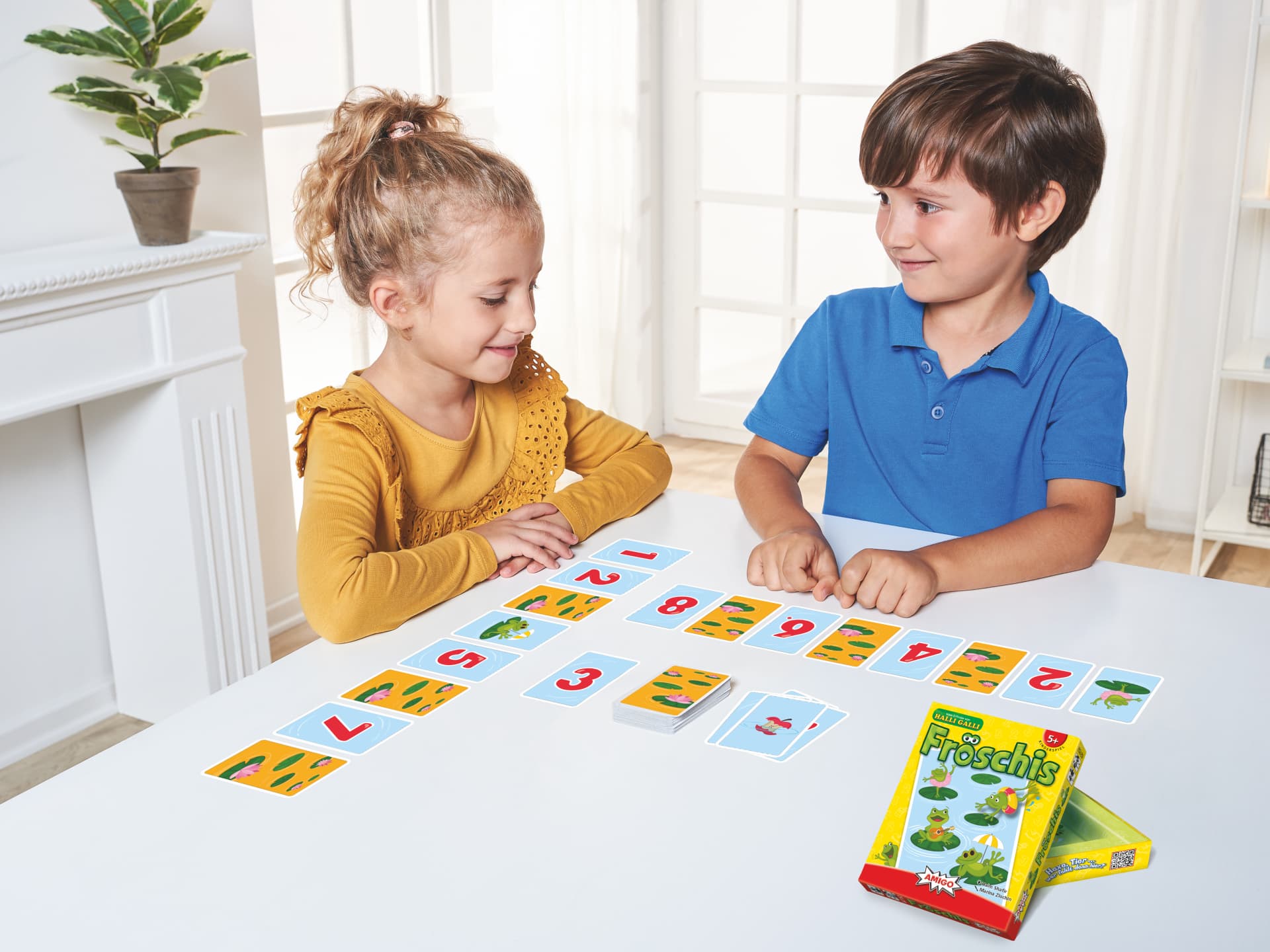 Lasst die Fröschis hüpfen! Die Zahlenwerte sollen mit Hilfe der Fröschis aufsteigend angeordnet werden. Doch im Teich schwimmen auch unnütze Dinge, die gar nicht passen! Tauscht geschickt die Karten und freut euch über die großen Sprünge der Fröschis! Ein Kinderspiel ab vier Jahren, das es auf die Empfehlungsliste von "Kinderspiel des Jahres 2022" geschafft hat.