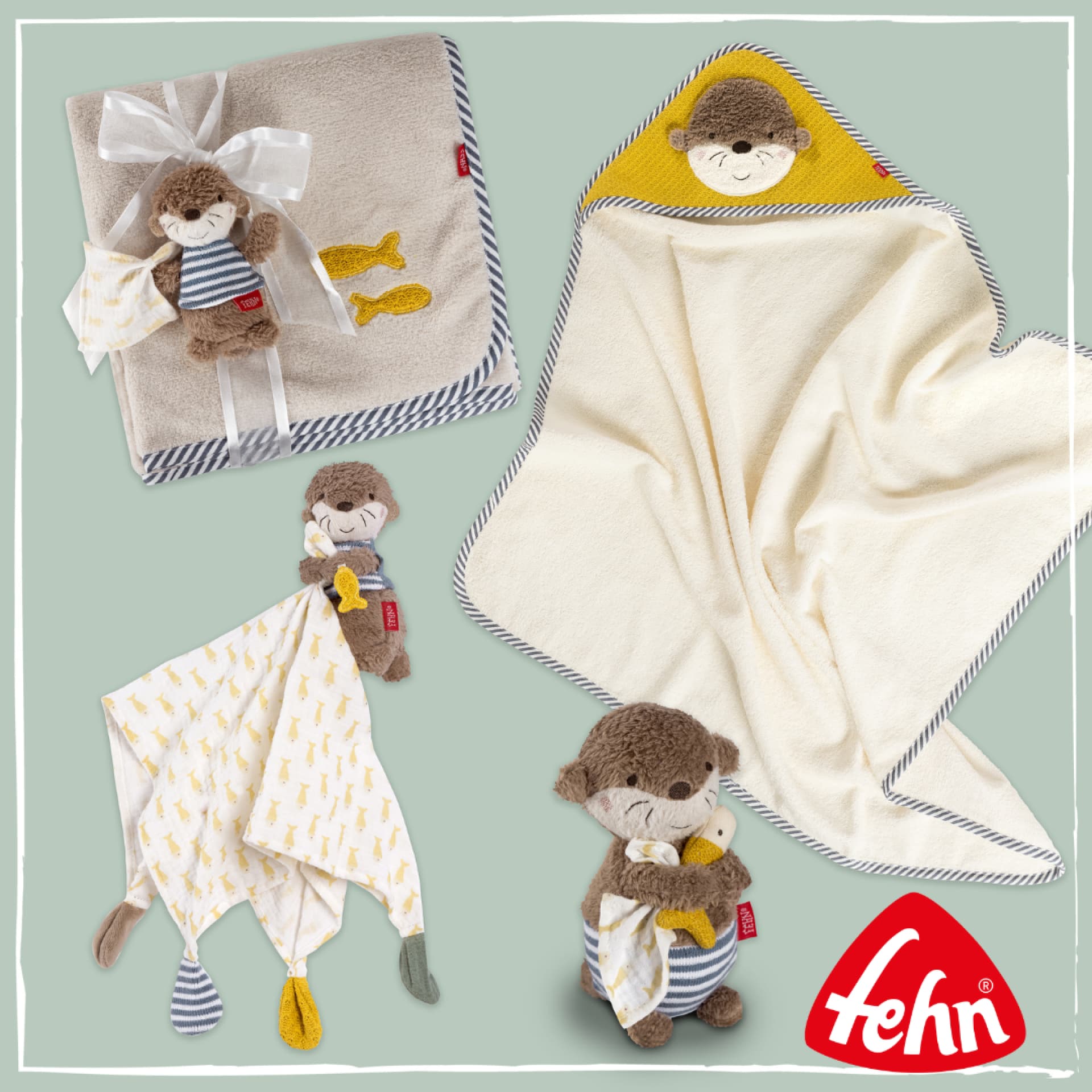Der kleine Otter Theo greift die Faszination für seine tierischen Vorbilder auf: abwechslungsreiche Materialien wie Plüsch, Strick und weicher Musselinstoff bieten Babys viel zum Ertasten und Entdecken. Als Begleiter im Wasser vermittelt das Badetier kleinen Händen ein schönes Gefühl von Griffigkeit – danach sorgt das passende Kapuzenbadetuch für Wärme und Geborgenheit. Schmusetuch und Kuscheldecke machen Theo zum vertrauten Freund im Alltag.