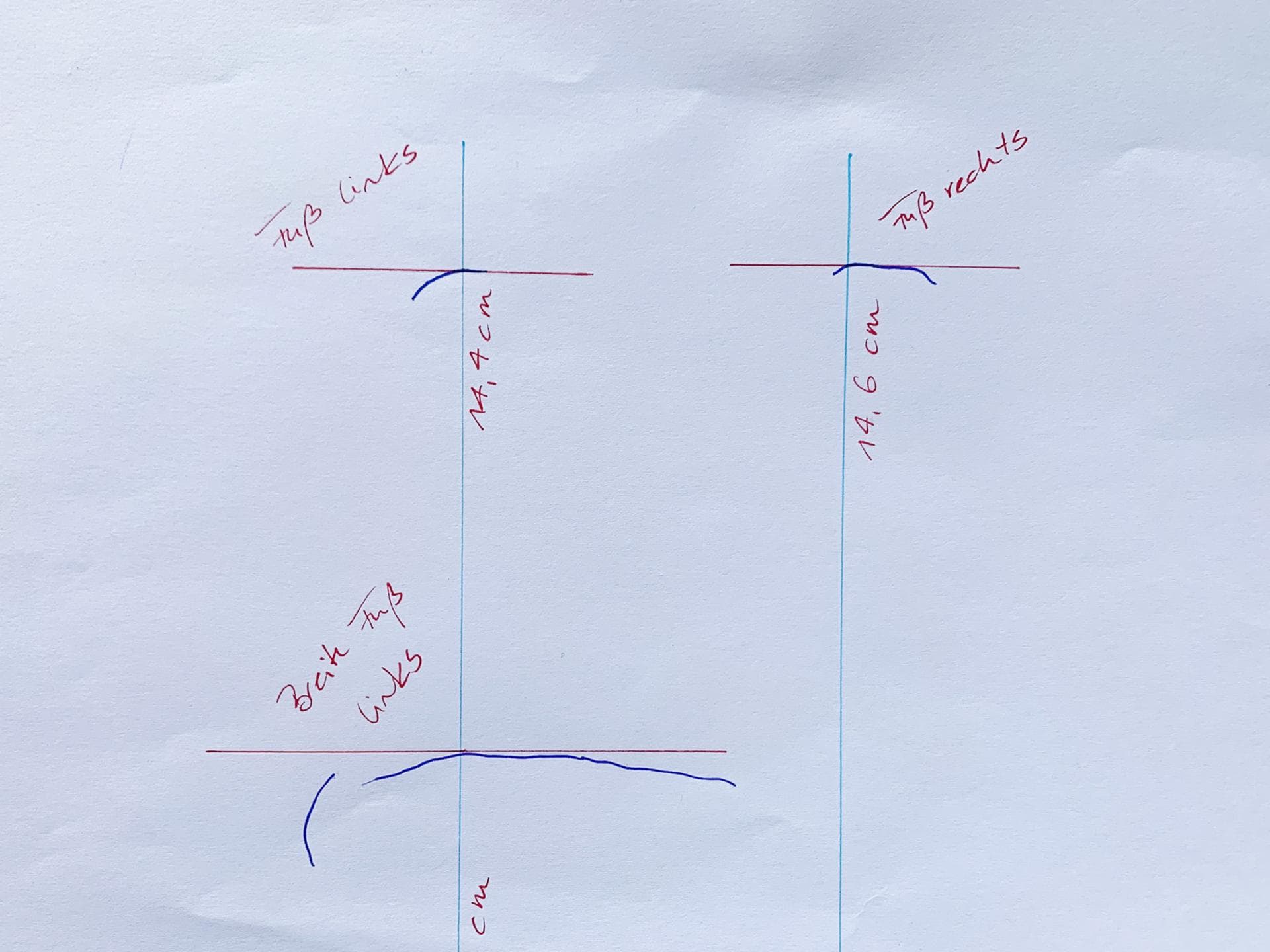 - Zieht mit einem Lineal eine gerade Linie entlang der Markierungen – dabei unbedingt am längsten/breitesten Punkt ansetzen – und messt den Abstand vom Blattrand zur jeweiligen Linie.