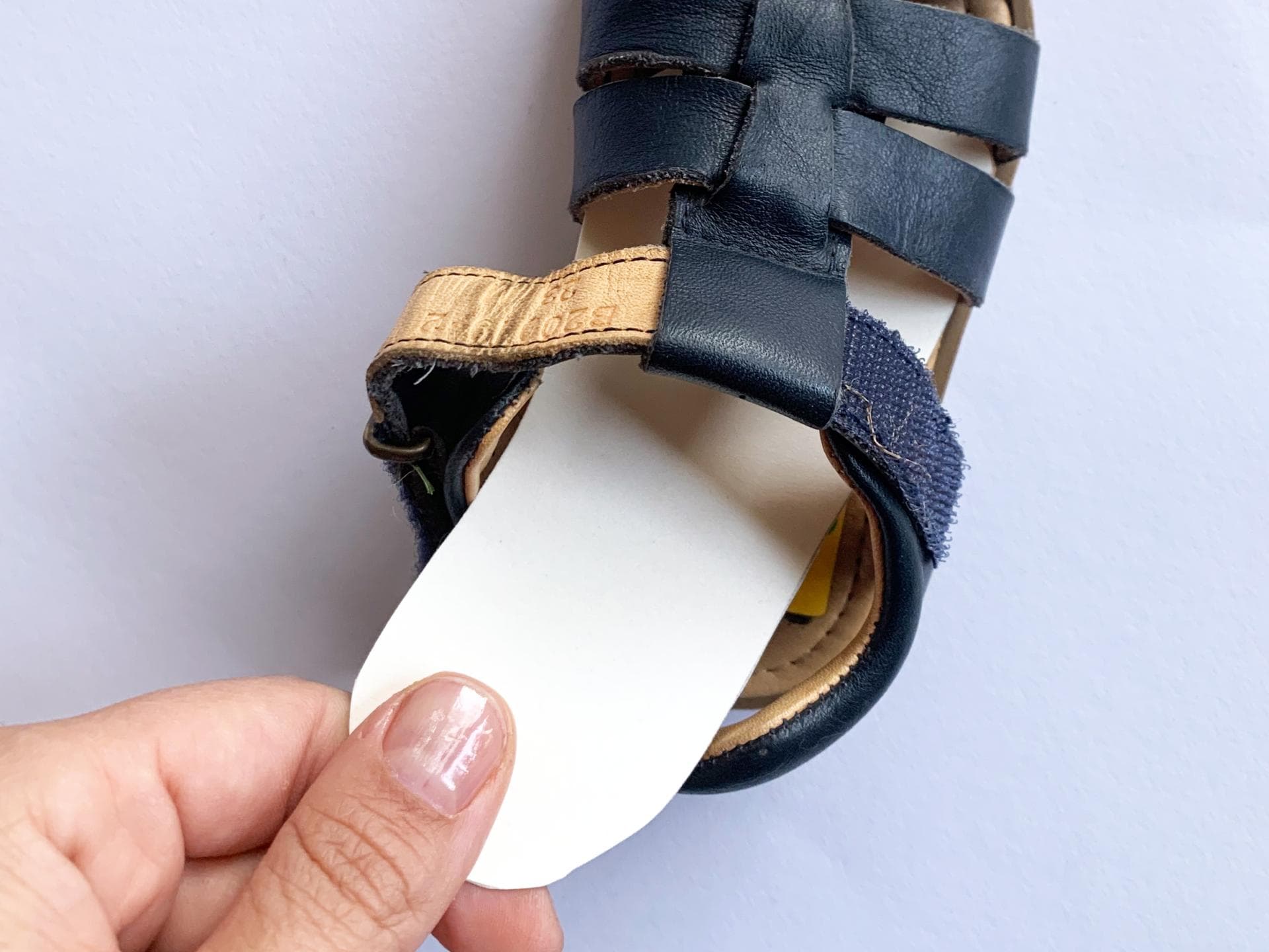 Die Kinderfuß-Schablone kann nun in jeden Schuh gelegt werden, um die Passform zu überprüfen. Häufig lässt sich die Sohle oder der Innenschuh herausnehmen, das erleichtert den Passformcheck noch mehr.