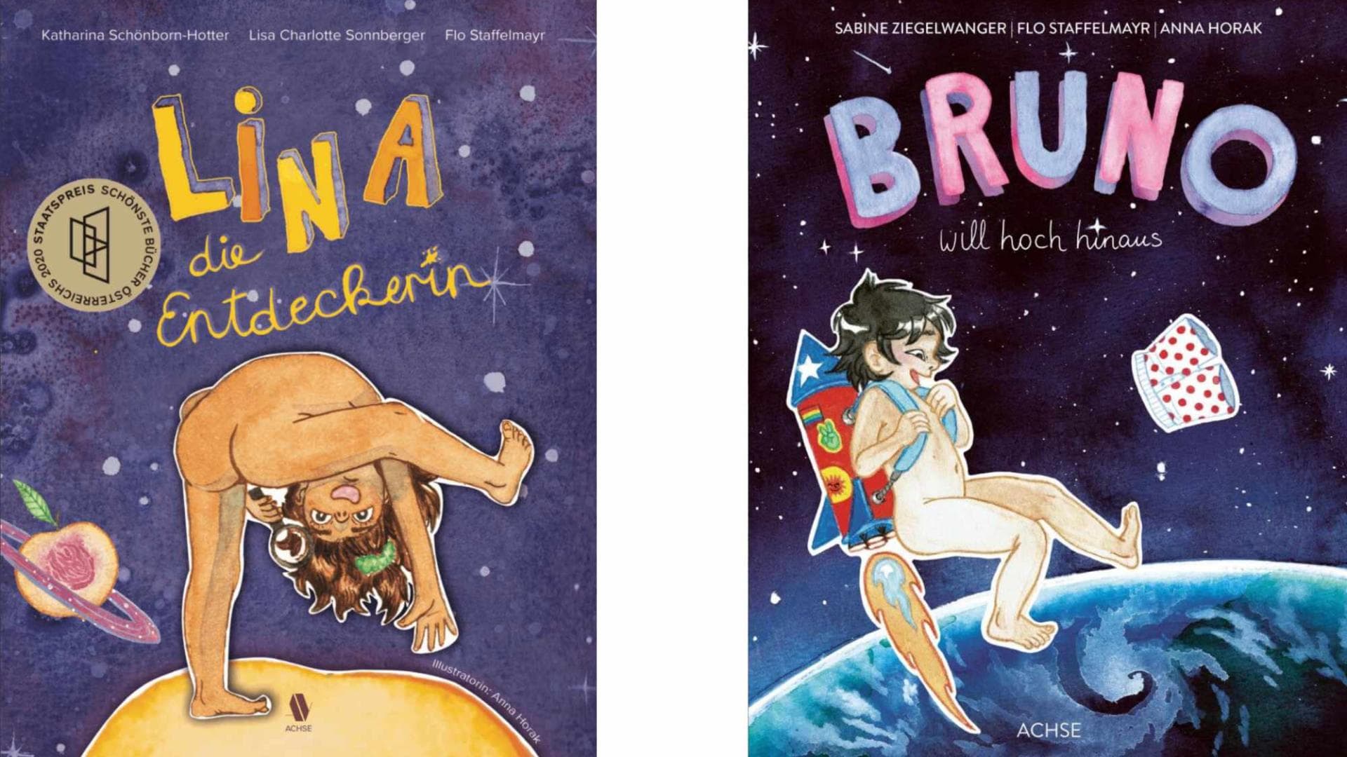 "Lina, die Entdeckerin" und "Bruno will hoch hinaus", Katharina Schönborn-Hotter, Lisa Sonnberger, Flo Staffelmayr, Anna Horak, Achse Verlag, 14,00 Euro, ab 4 Jahren, über Amazon: für Mädchen, für Jungen