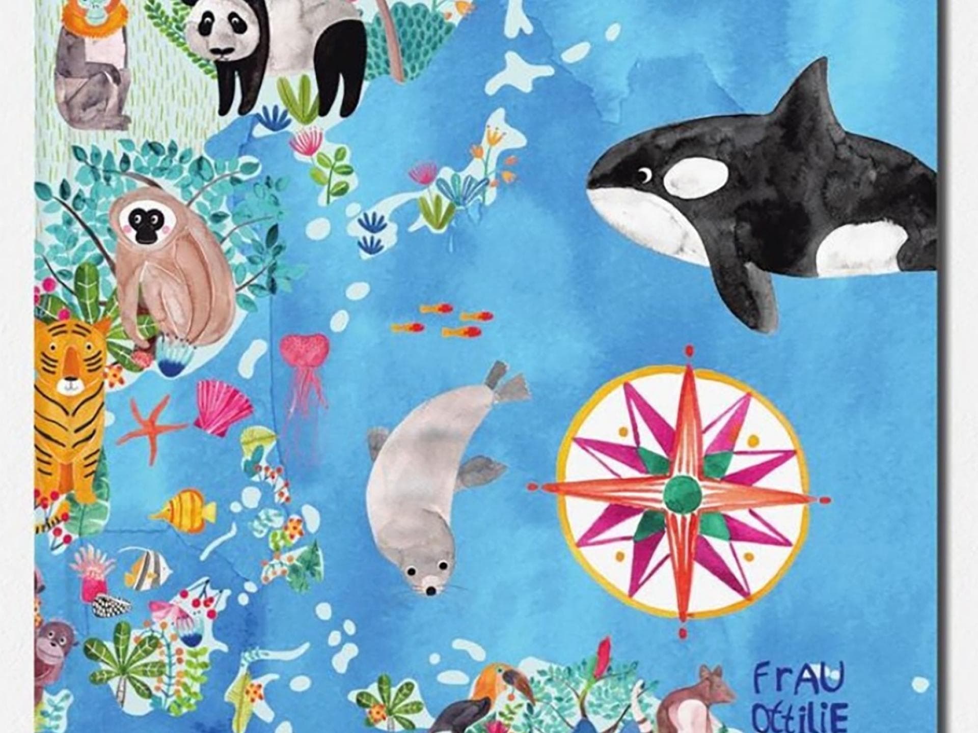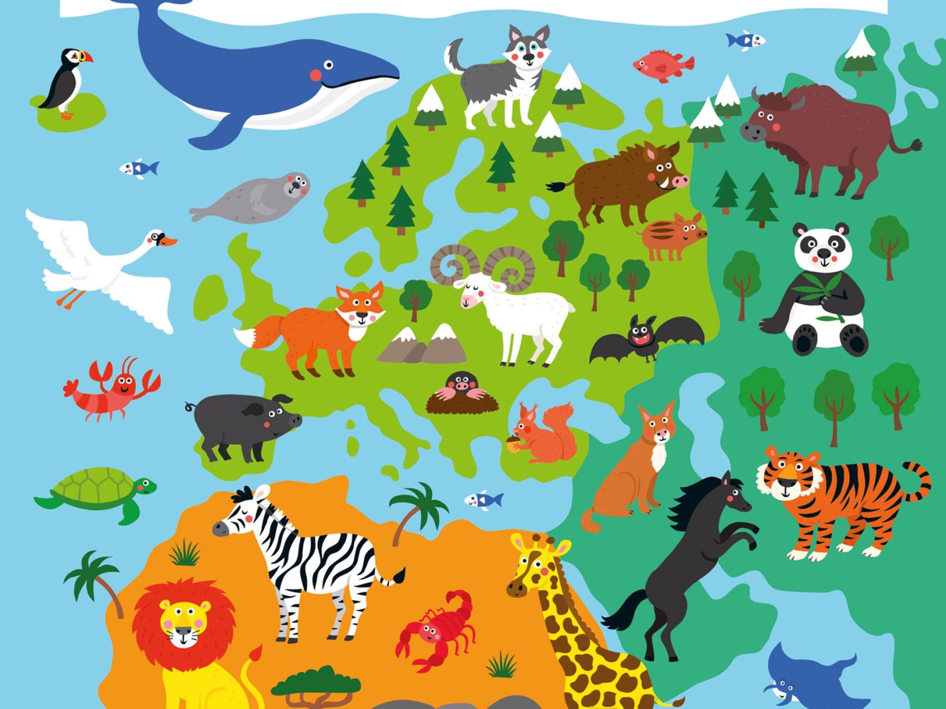 Knallig, bunte Illustrationen zeigen in diesem Atlas, wo auf unserer Welt 260 Tiere leben.