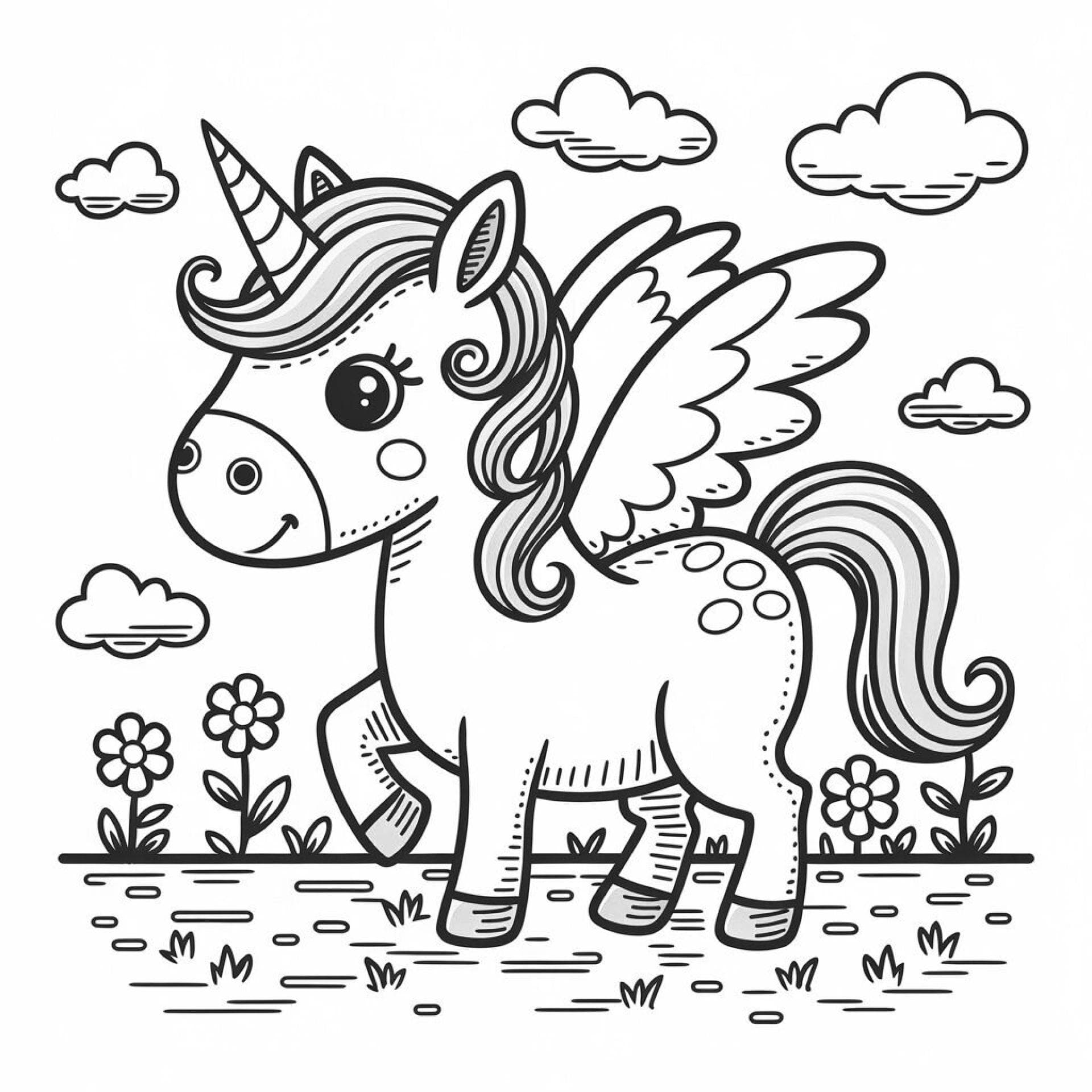 Ihr seid auf der Suche nach einer Malvorlage mit einem Einhorn mit Flügeln? Vielleicht gefällt euch ja eines der folgenden Ausmalbilder ...