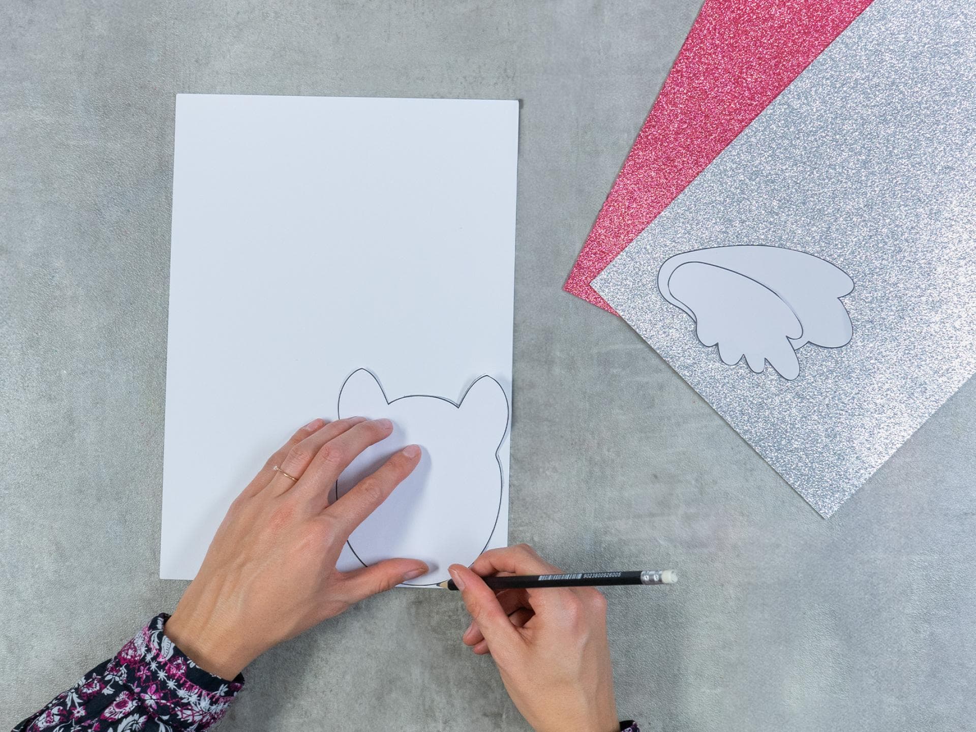 Die Schablone für Kopf und Flügel, die ihr euch hier herunterladen und ausdrucken könnt, stammt mit freundlicher Genehmigung von "Jetzt kommt Kurth ...".