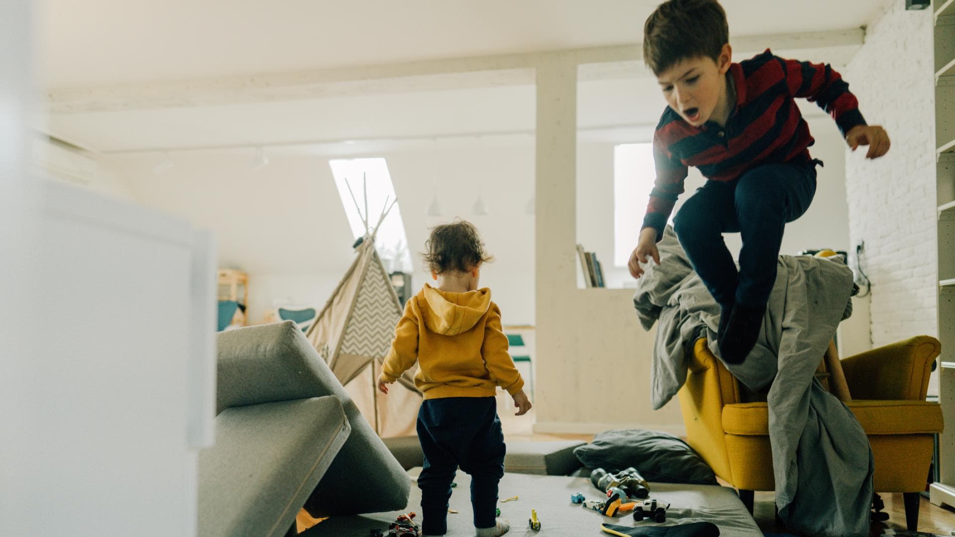 "Ich habe drei Jungs zu Hause im Alter von fünf Jahren, drei Jahren und sechs Monaten. Ehrlich gesagt fühle ich mich am Nachmittag oft überfordert und es fällt mir schwer, mit den drei Kindern zu spielen. Die größeren wollen mit mir raufen oder Rollenspiele spielen. Ich habe oft keine Kraft zum Spielen, und was mache ich in der Zeit mit dem Kleinen? Die beiden Größeren spielen meist nur kurze Zeit miteinander.