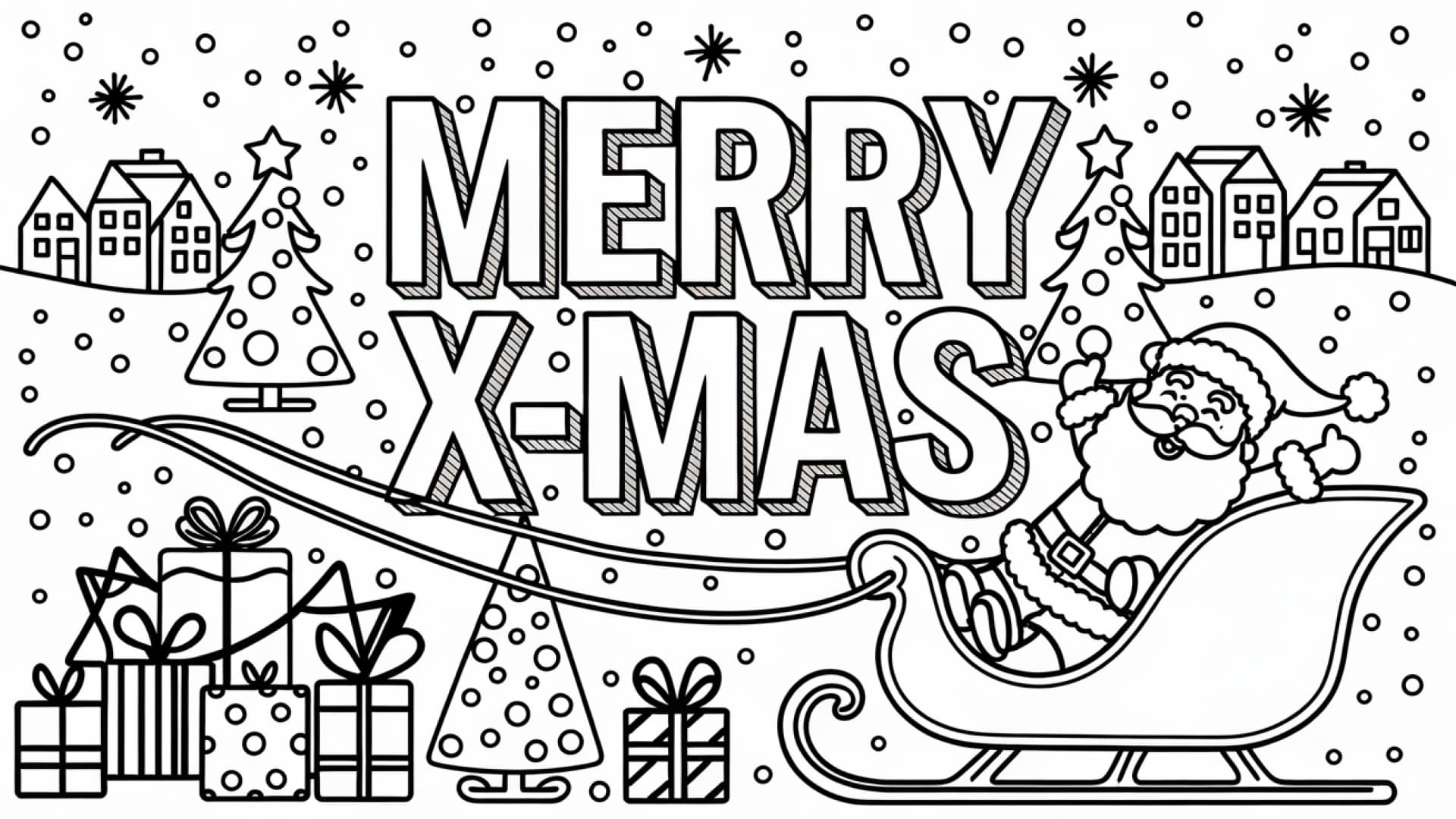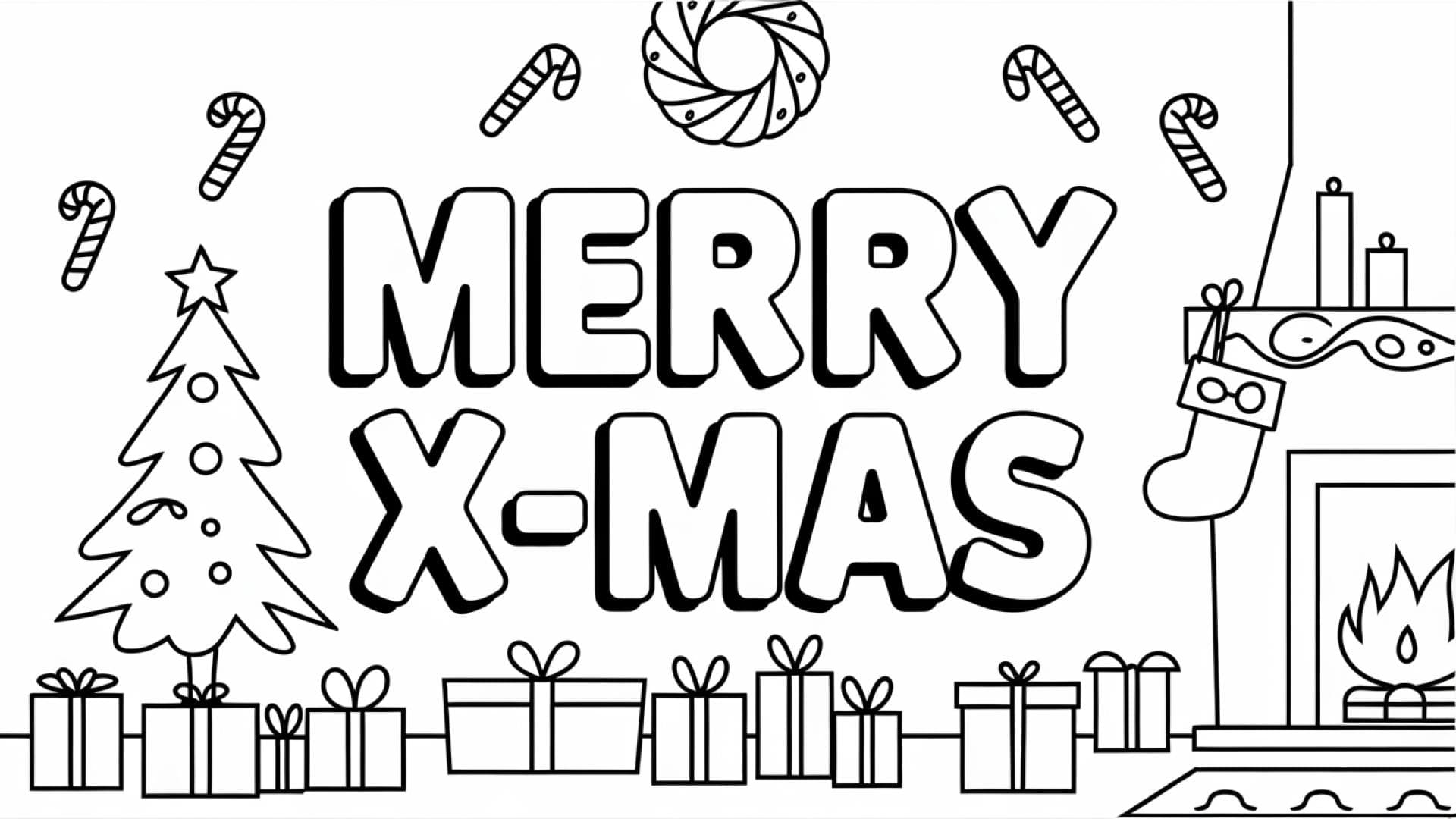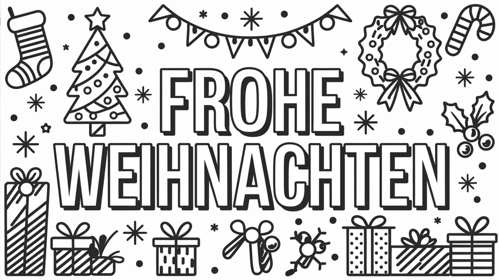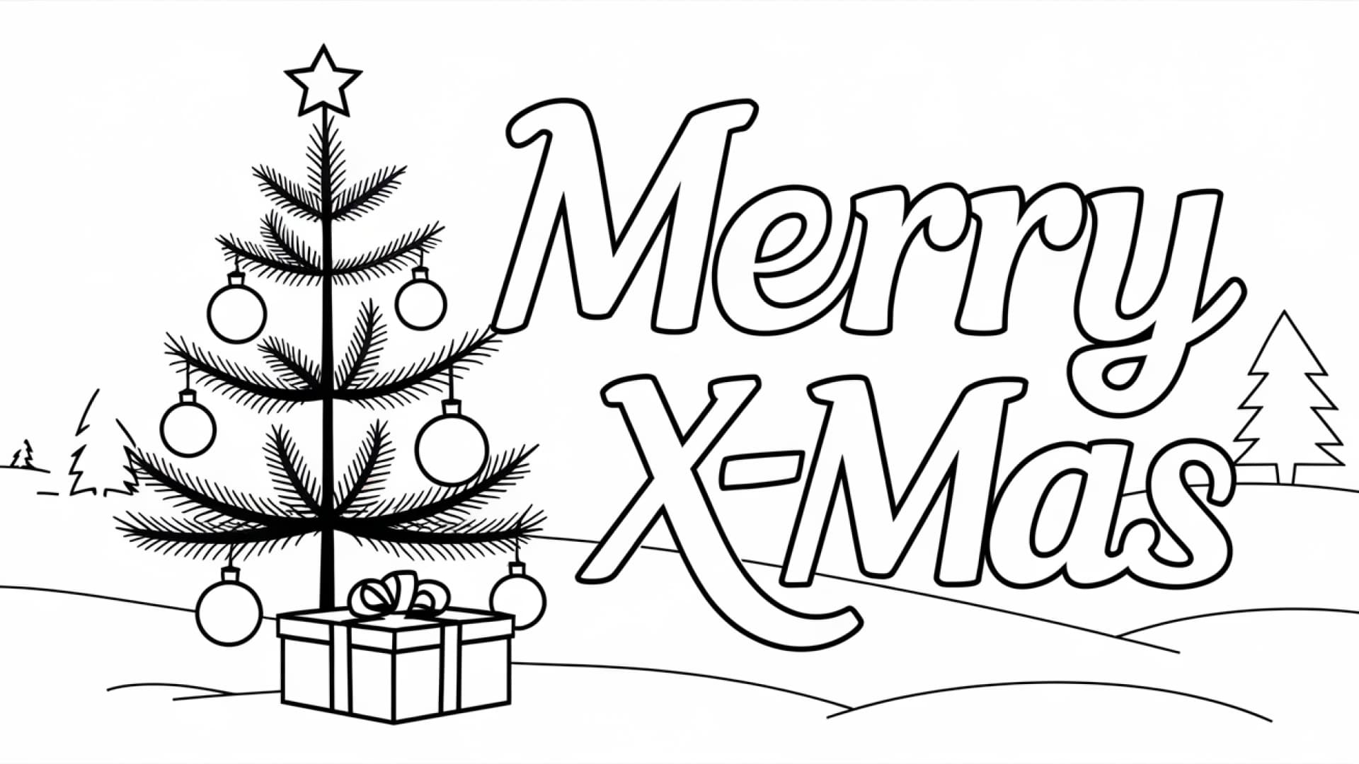 Ihr braucht noch ein Geschenk zu Weihnachten? Dann sind diese Malvorlagen mit Schriftzug "Frohe Weihnachten" oder "Merry x-mas" ideal.
