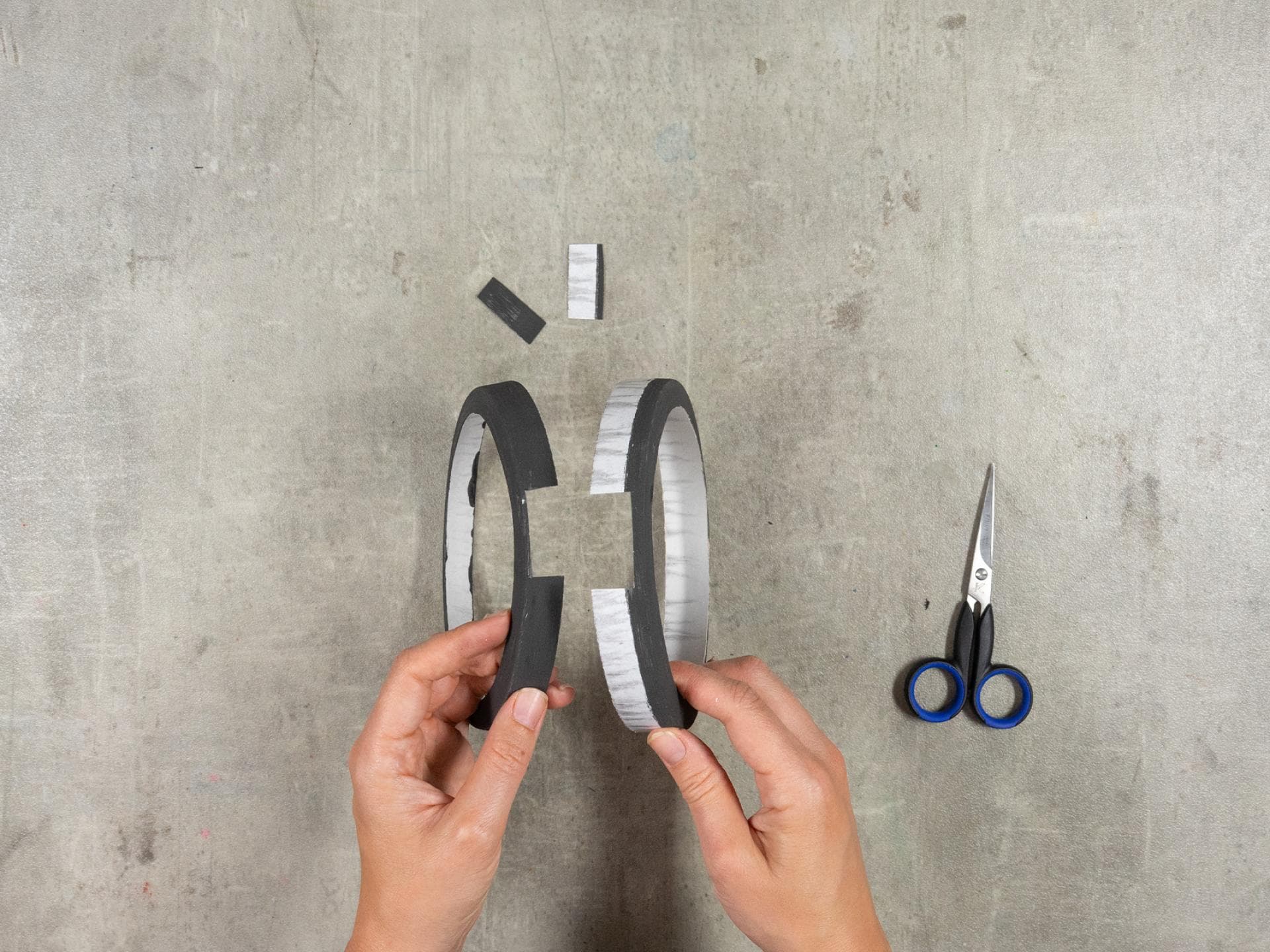 Klebt die beiden Seiten zusammen. Dreht dabei die Hälften so, dass die Öffnungen aus Schritt 5 übereinander liegen.