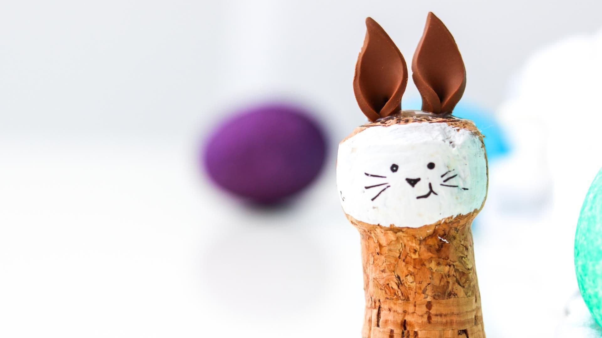 Hier werden Korken mit wenigen Teilen beklebt und bemalt. Und schon entstehen Osterhasen und Osterküken. Schneidet am besten mit einer sehr feinen Schere die Hasenohren aus. Die Gesichter mit einem schwarzen Fineliner bemalen. Der Puschelschwanz bzw. die Flügel werden aus Watte gezaubert.