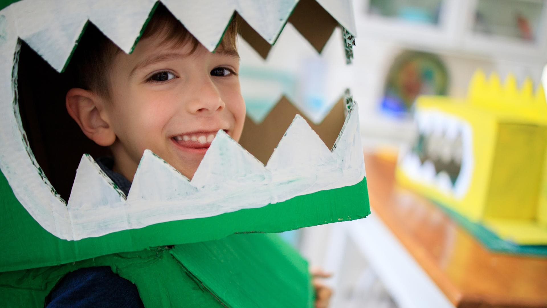 Achtung, bei dieser Bastelei muss auf jeden Fall sichergestellt werden, dass die Kinder drunter auch genügend Luft bekommen. Also: Lieber nicht nur Augenschlitze schneiden, sondern auch einen Mund. Und dann können die Kinder einfach lustige Fratzen oder Monster-Gesichter draufmalen. Oder auch das Lieblingstier.