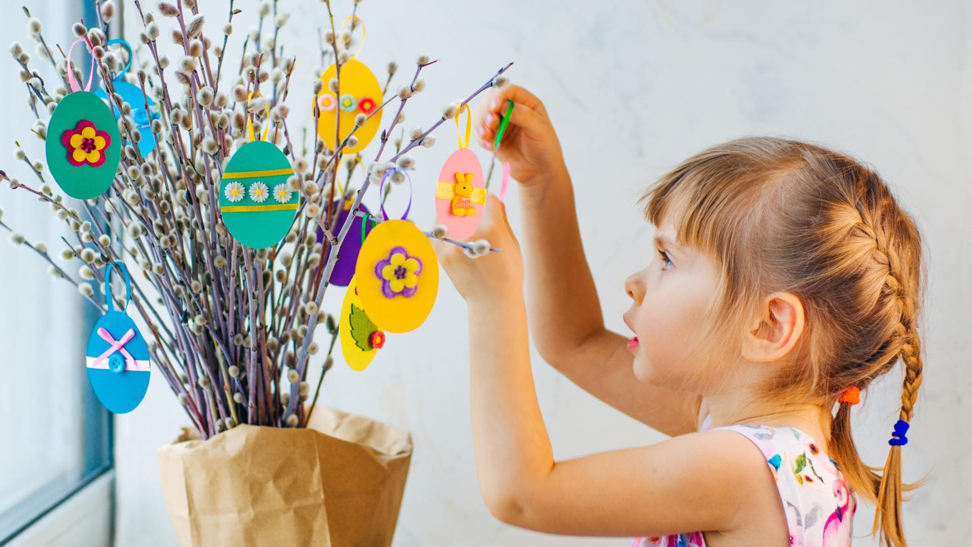 Eine Bastelidee, die auch schon gut mit Kleinkindern zu bewerkstelligen ist: Vorab am besten eine Eier-Schablone aus Pappe anfertigen. Dann könnt ihr zusammen mit euren Kids viele Eier ausschneiden und danach können die Kleinen bunt drauflostuschen. Wenn die Farben getrocknet sind, einfach mit Wäscheklammern an eine Bastschnur klemmen und aufhängen.