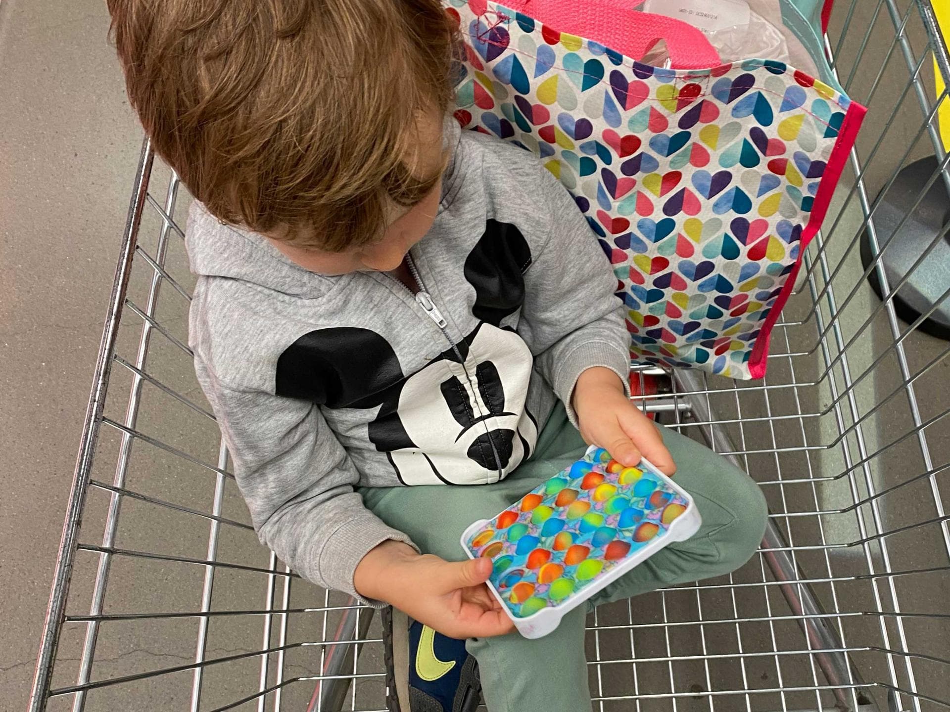 Als ich vor Kurzem mit meinem Sohn unterwegs war, entdeckten wir in einem Schaufenster die bunten Spielzeuge. "Oh, kann ich so eins haben, Mama?", fragte er mich direkt. Ich schätze mal, dass es die bunte Aufmachung der Pop its ist, die so reizvoll für Kinder ist. Nach dem Kauf wurde das "Fidget toy" natürlich sofort ausprobiert. Und was soll ich sagen? Mein Sohn war so fasziniert davon, die bunten Noppen immer wieder zu drücken, dass mein Mann und ich den wohl entspanntesten Einkauf ever bei IKEA vollbrachten. Unser Sohn saß im Einkaufswagen und war von seinem neuen Spielzeug nicht mehr wegzukriegen.