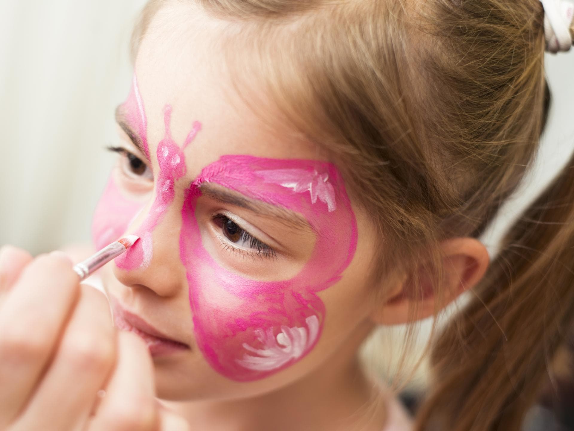Gerade kleinen Kindern fällt es oft noch schwer, beim Schminken lange stillzuhalten. Und viele mögen es auch nicht, wenn man zu nah an den Augen hantiert. Als Variante könnt ihr eurem Kind dann einfach einen bunten Schmetterling auf die Wange malen. Das sieht nicht nur süß aus – sondern geht auch wirklich super einfach!