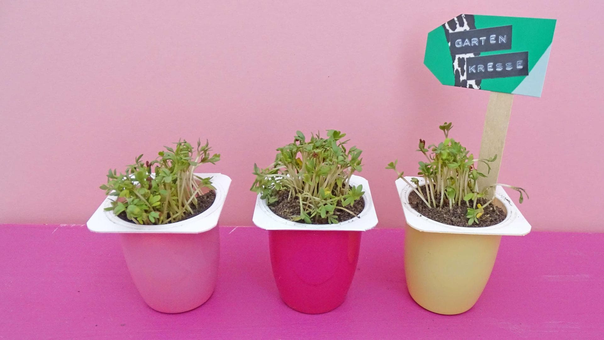 - Die Becher an einen hellen Ort stellen und regelmäßig gießen. Ein paar Tage warten – dann ist Erntezeit!