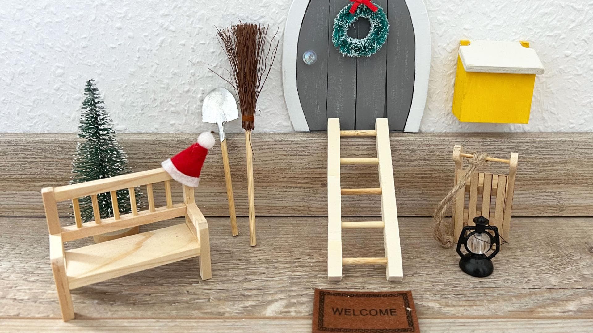 Ganz klassisch ist eine schlichte Wichteltür aus Holz (14,99 Euro). Dazu gibt es ein Basis-Paket an Wichtel-Zubehör wie der Laterne oder Miniatur-Stiefeln (die ihr auch direkt verwenden könnt, um Fußstapfen in eurem Haus zu erzeugen.