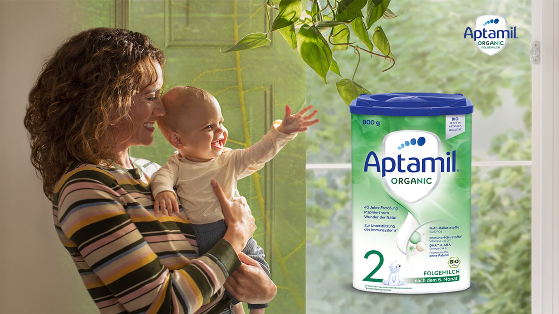Babys entwickeln sich Tag für Tag. Die richtige Ernährung spielt dabei eine große Rolle. Um die Entwicklung deines Nachwuchses bestmöglich zu unterstützen, vereint die "Aptamil Organic Folgemilch 2" 40 Jahre Muttermilchforschung und Natur auf besondere Art und Weise. Bei der Zubereitung der Folgemilch werden daher nur ausgewählte und kontrollierte Bio-Inhaltsstoffe verwendet – das ist Bio jetzt in Aptamil-Qualität.