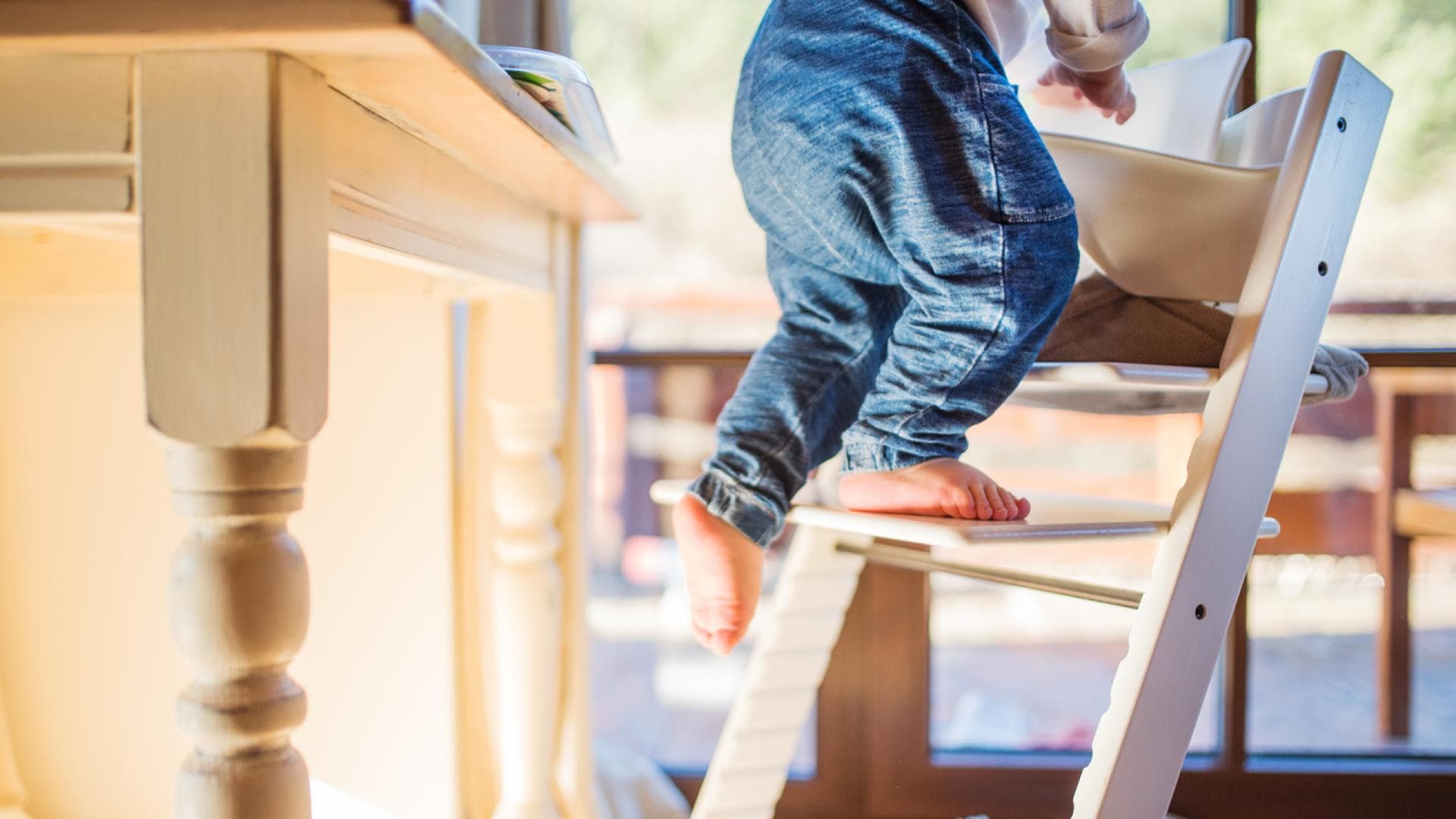 Um die Sitzhöhe zu bestimmen, solltest du darauf achten, dass dein Kind bequem am Esstisch sitzen kann. Die Arme sollten entspannt auf der Tischplatte aufliegen können, ohne dass die Schultern hochgezogen werden müssen.
