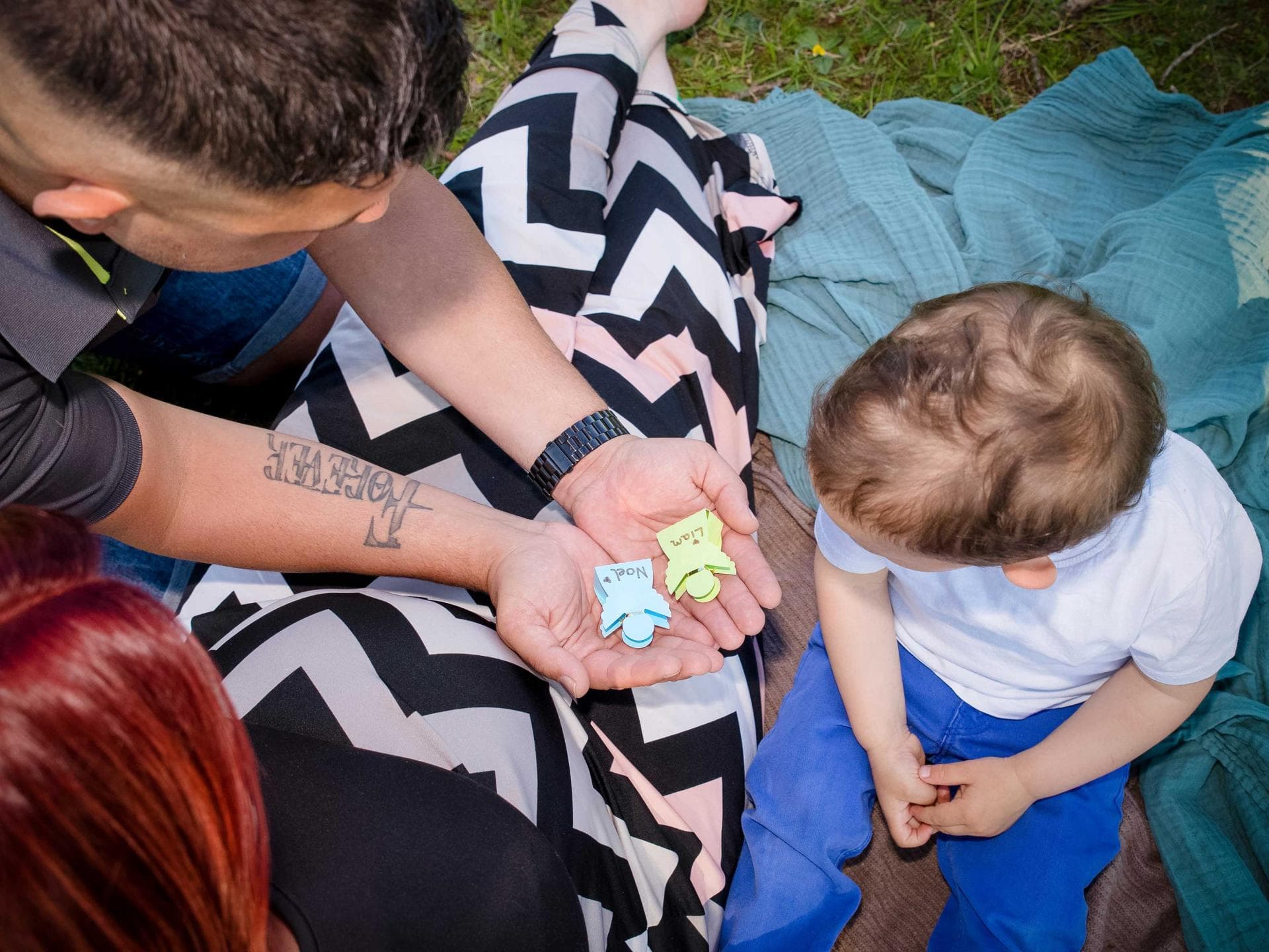 2017 hielten dein Papa und ich nach zwei Jahren erfolgloser Versuche einen positiven Schwangerschaftstest in der Hand. Der Arzt stellte bei der Untersuchung fest, dass wir eineiige Zwillinge erwarteten. Alles lief wunderbar, die beiden entwickelten sich mehr als 30 Wochen lang sehr gut – obwohl deine Brüder einen Sonderfall darstellten. Sie hatten getrennte Fruchtblasen, allerdings eine gemeinsame Plazenta. Nach den finalen Vorsorgeuntersuchungen ging es in der Nacht vom 8. Dezember 2017 los. Ein Ziehen breitete sich über den ganzen Bauch aus, gegen Mittag konnte ich kaum noch laufen. Zeit also, um mir die Kliniktasche zu schnappen und ins Krankenhaus zu fahren. Dort angekommen, wurden wir von einem Raum in den nächsten geschickt, immer mehr Personen kamen dazu. Wir verstanden sofort, dass mit Liam und Noel etwas nicht stimmte. Es konnten keine Herztöne gefunden werden. Wir erfuhren, dass unsere beiden Kinder in der Nacht verstorben waren. Schuld war die spezielle Form der Zwillingsschwangerschaft: Noel hatte quasi die Nabelschnur von Liam angezapft, wurde dadurch über- und Liam unterversorgt.