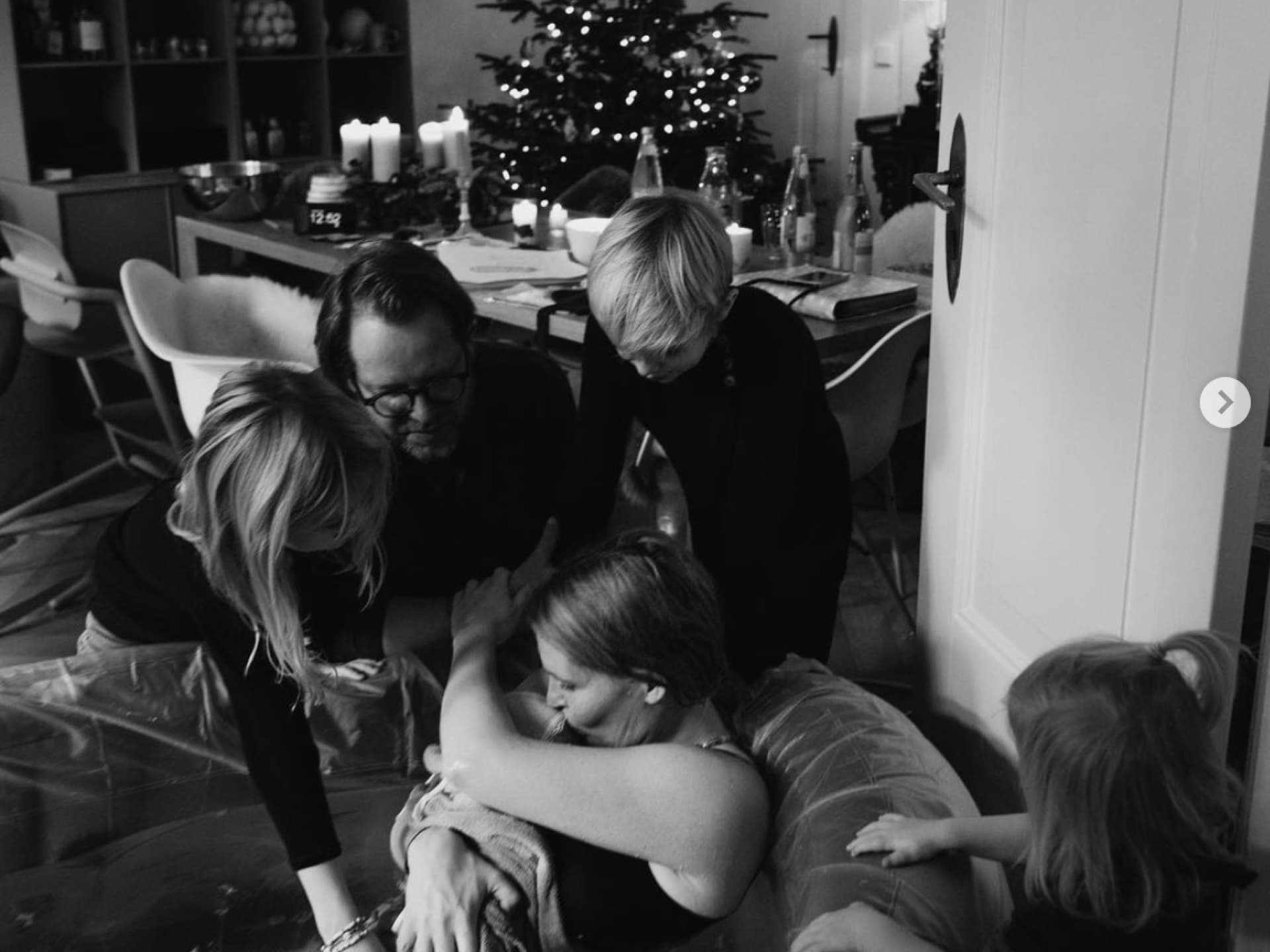 Morgens bin ich dann aufgewacht und dachte mir nur – hmm, vielleicht beginnt diese Geburt ausnahmsweise mal mit Wehen ... und so war es auch! Alle Kinder waren zu Hause, und nachdem wir ausgeschlafen hatten, bemerkte ich, dass meine leichten Wehen regelmäßig wurden. Ich habe dann als Erstes meine Freundin und Hebamme @melanie_weinhoenig angerufen, sie wohnt eineinhalb Stunden entfernt, ob sie sich nicht schon ganz entspannt auf den Weg zu uns machen kann … Eigentlich hatte ich an diesem Tag noch einen Ultraschalltermim bei meinem lieben Dr. Hellmeyer in meiner Klinik. Den haben wir direkt erst einmal abgesagt und dann den Kindern erzählt, dass unser Baby jetzt geboren werden möchte … Besonders Lilo habe ich noch mal vorgemacht, wie ich jetzt atmen werde.