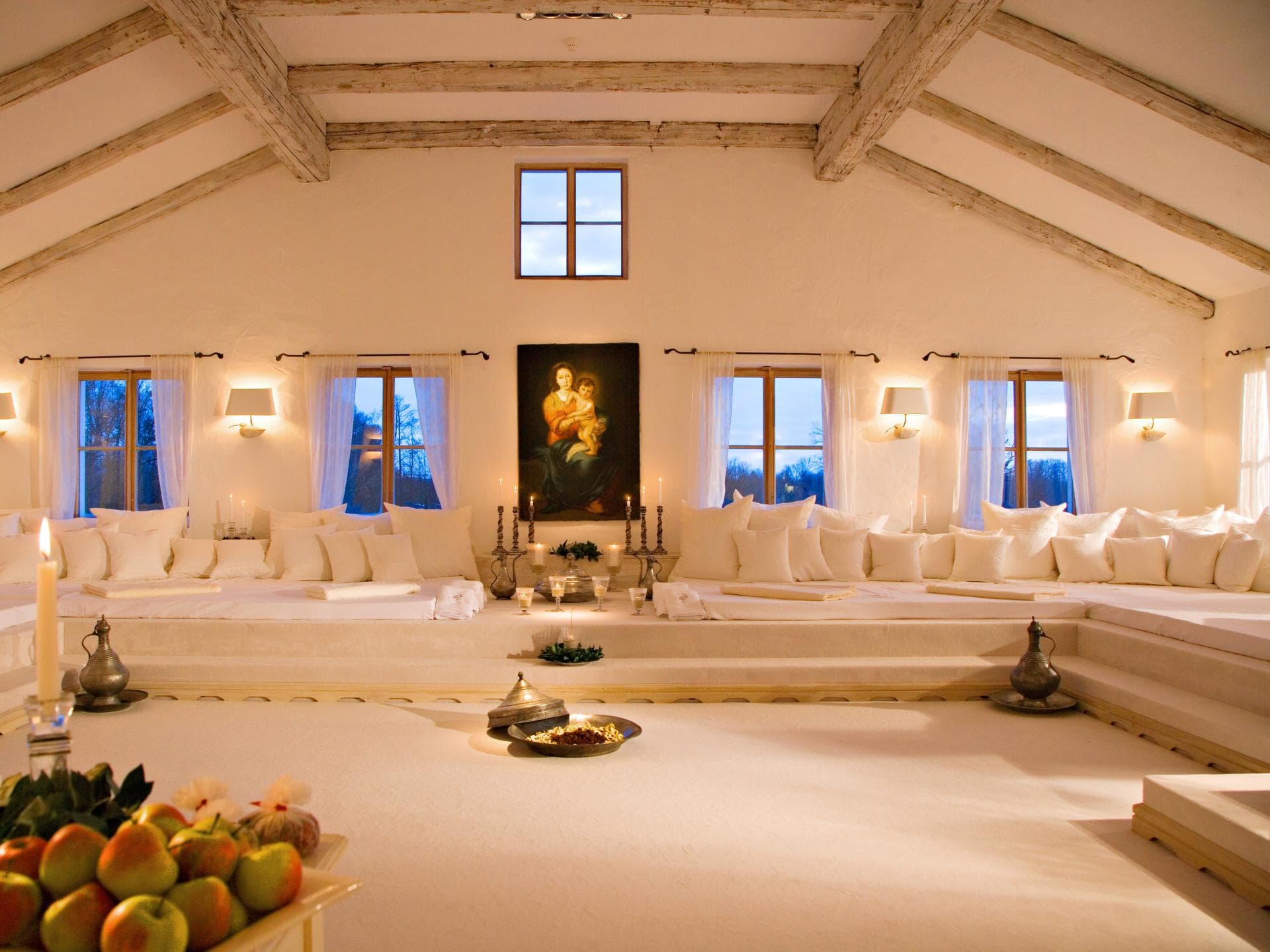 Ins Berchtesgadener Land, genauer: in den Ort Bayerisch Gmain, geht die Reise in der Schwangerschaft zum "Klosterhof" (4 Sterne plus) mit einem außergewöhnlichen Konzept, der "Artemacur-Spa-Philosophie": die Kunst, sich selbst zu heilen. Dazu kommt das Arrangement "Begeisterung leben" mit allem, was Schwangeren guttut: Salzabrieb und Körperölung lassen die Haut geschmeidiger werden, was Schwangerschaftsstreifen vorbeugt. "Dazu kommen therapeutisch begleitetes Floaten in zwölfprozentiger Sole, Massagen im Sitzen oder von der Seite mit Streicheln im Bauchbereich und Entspannungsübungen", erklärt Spa-Leiterin Kimberly Wahry. "Entspannungs- und Achtsamkeitsübungen kommen hinzu. Gesteigerte Köperwahrnehmung trägt positiv zur Geburtsvorbereitung bei." Auch beruhigend: Die Geburtsklinik Bad Reichenhall ist nur zehn Autominuten vom Hotel entfernt. Eine Woche im Hotel mit Frühstück ab 257 Euro (p. P./DZ), dazu kommen die jeweiligen Anwendungen.