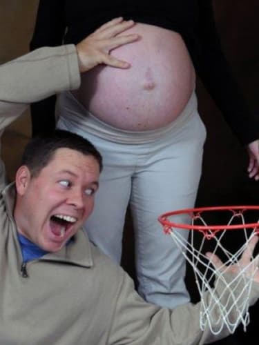 Es geht sportlich weiter: Ob dieser werdende Papa wohl etwa Basketball-verrückt ist? Sein Blick lässt drauf schließen. Fanatisch – und einfach crazy!